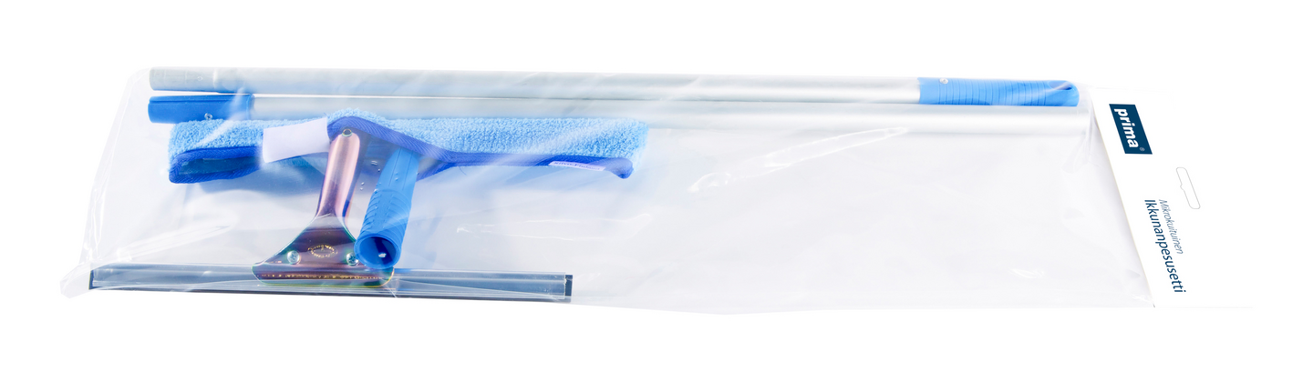 Ikkunanpesusetti sisältää kaikki tarvittavat tuotteet ikkunoiden pesuun pienissä kohteissa: 35 cm ikkunankuivaimen, 35 cm ikkunapesimen ja mikrokuituisen nukkakankaan sekä alumiinivarren. Ammattikäyttöön.