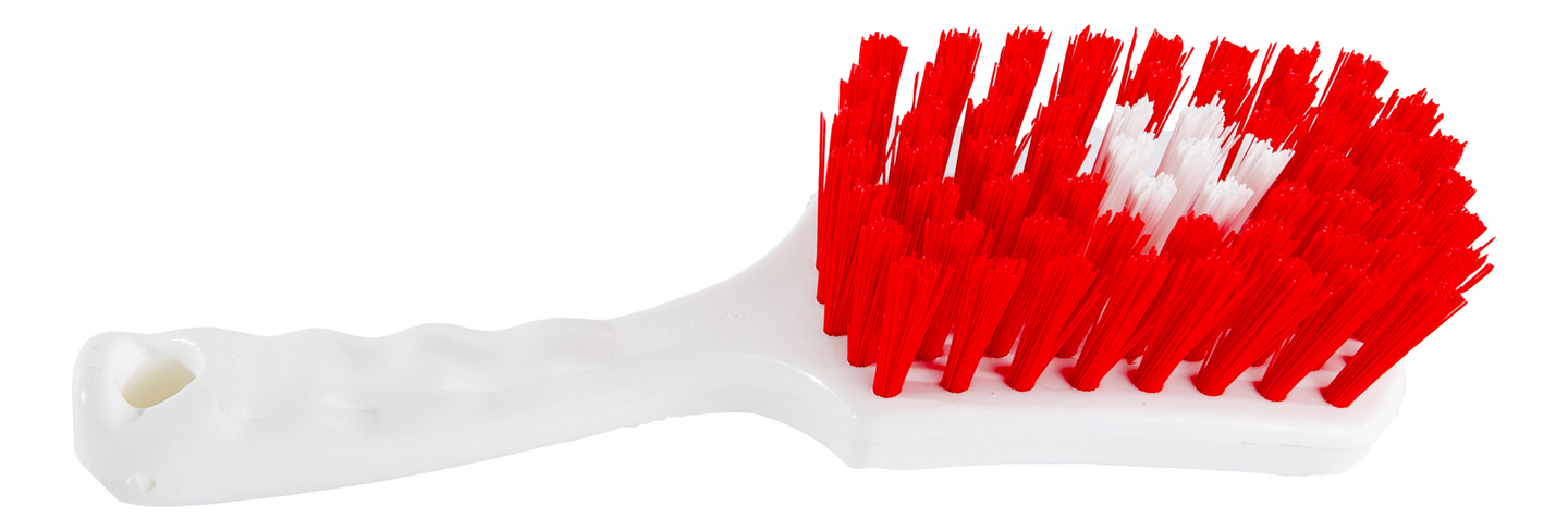 Kovien pintojen, kuten kalusteiden ja lauteiden pesuun tarkoitettu lyhytvartinen pesuharja värikoodatuilla harjaksilla. Lämmönkesto +135 °C. Ammattikäyttöön.