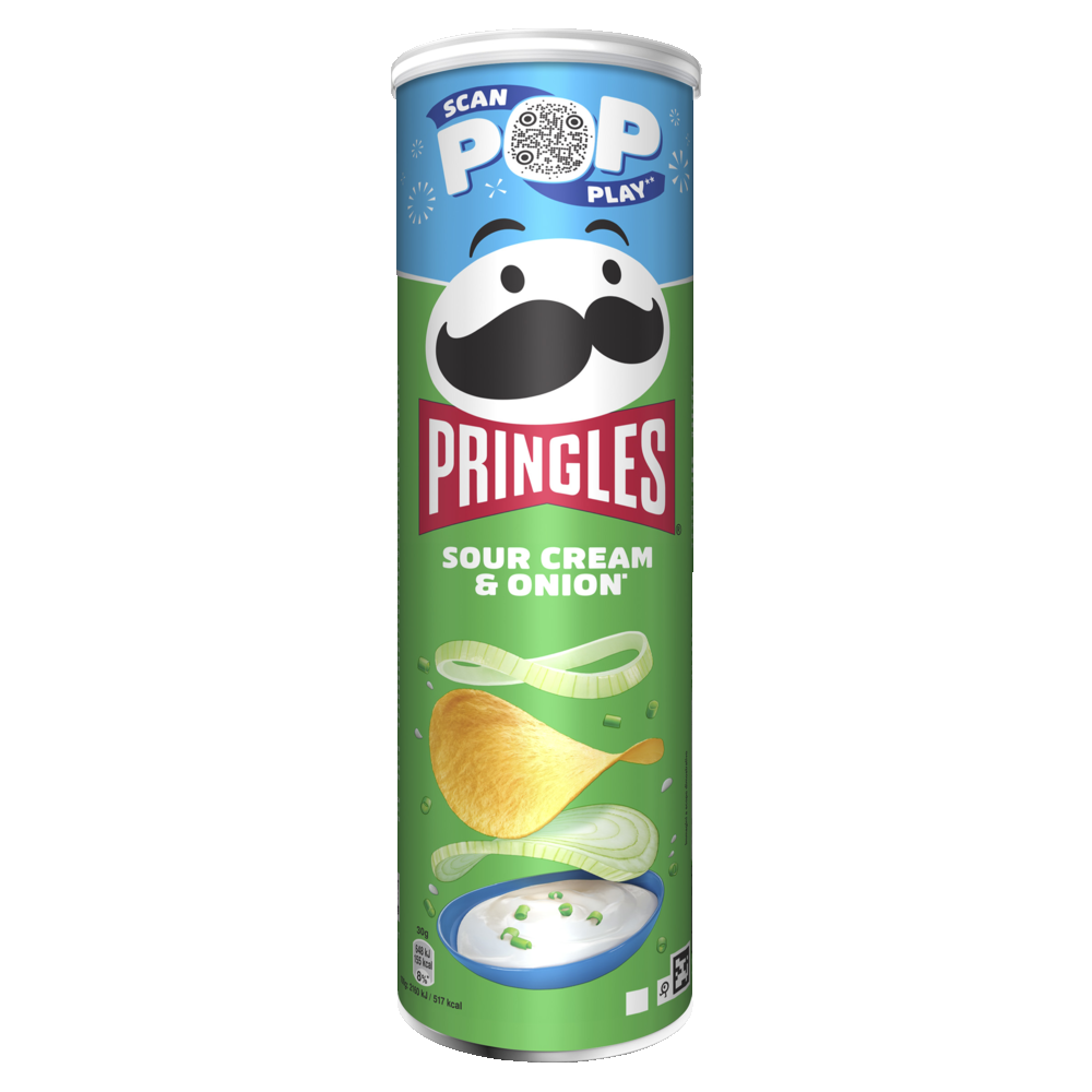 Creme fraichen, sipulin ja perunan yhdistelmä on aivan uskomaton – sitä ei nykytieteen keinoin mitata. Meistä se on vain luonnon tarkoittama makuyhdistelmä, jonka ihminen hioi huippuunsa. Nämä herkulliset sipsit sopivat täydellisesti mihin tahansa juhliin, kokoontumiseen tai iltapäivän välipalaan. Riippumatta siitä, milloin nautit Pringles Sour Cream and Onion -sipsejä, ne pysyvät aina tuoreina ikonisen uudelleensuljettavan purkkimme ansiosta.