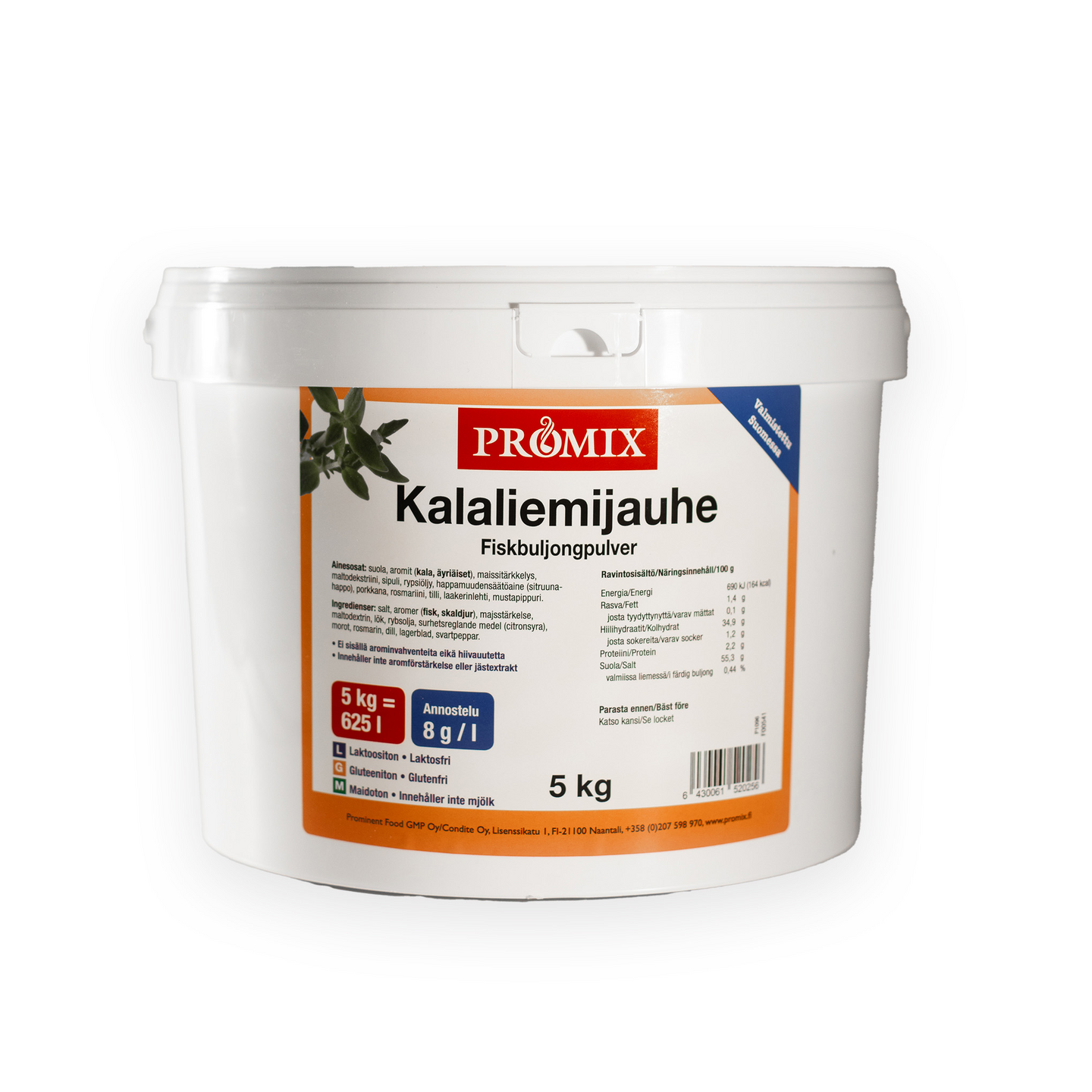 Ainesosat: suola, aromit (KALA, ÄYRIÄISET), maltodekstriini,maissitärkkelys, sipuli, rapsiöljy, happamuudensäätöaine (sitruunahappo), porkkana, rosmariini, tilli, laakerinlehti, mustapippuri.