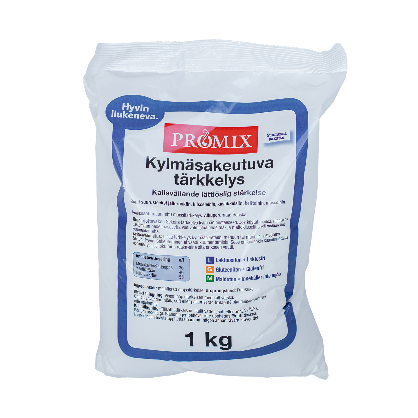 Promix kylmäsakeutuva tärkkelys sopii suurusteeksi jälkiruokiin, kiisseleihin, kastikkeisiin, keittoihin sekä massoihin.