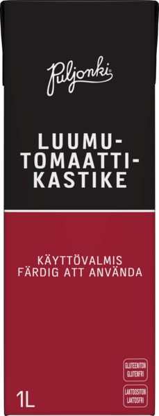 LaktoositonPuljonki® Luumutomaattikastike on perinteiseen italialaiseen tapaan valmistettu luumutomaattikastike. Selkeä, puhdas ja raikas tomaattinen maku, jota täydennetään basilikalla, cayennepippurilla sekä chilillä. Erinomainen pizzakastike ja tomaattikeiton pohja. Tarjoile italialaisittain lihapullien ja pastan kera.