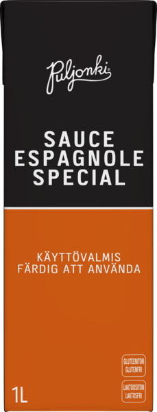 LaktoositonPuljonki® Sauce Espagnole Special on klassinen espagnole kastikepohja. Siinä on voimakkaan lihaisa maku jota tukevat kasvisten aromit. Puljonki® Sauce Espagnole Special sopii erinomaisesti kastikkeiden pohjaksi ja se antaa paljon vaihtoehtoja maustamiseen. Saat kastikkeesta omanlaisen ja ainutlaatuisen lisäämällä siihen esimerkiksi kermaa , tuoreita yrttejä tai muita makua antavia raaka-aineita. Soveltuu pohjaksi tummiin kastikkeisiin ja pataruokiin.