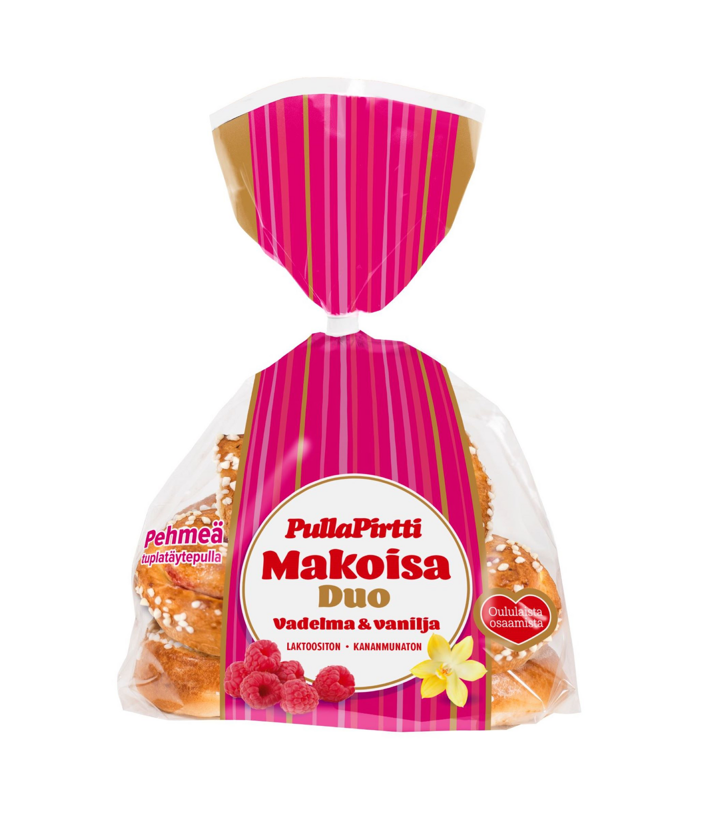 Pulla-Pirtti Makoisa Duo vadelma&vanilja 5/250g laktoositon täytepulla