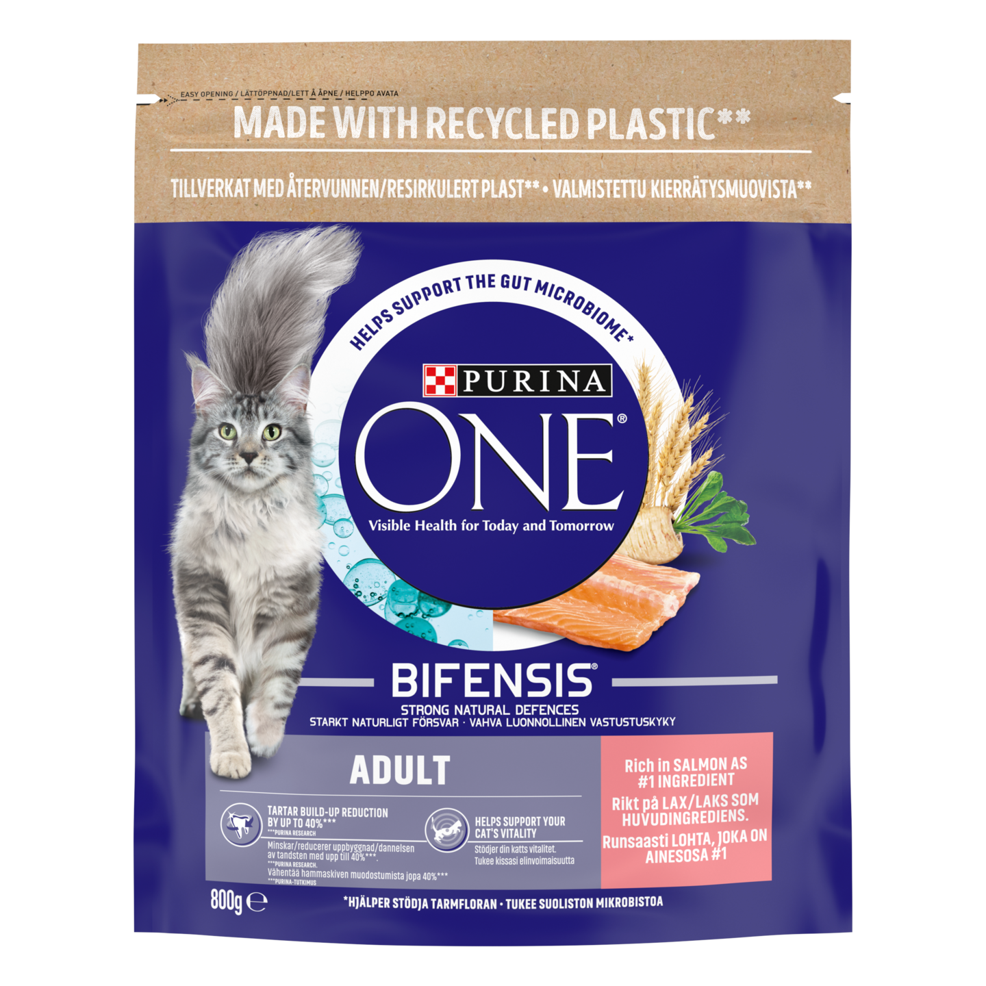 Purina ONE Adult Runsaasti Lohta ja Täysjyväviljaa 800g kissanruoka