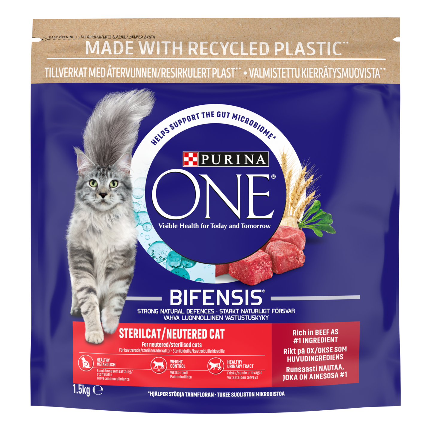 Purina ONE Sterilcat 1,5 kg kissanruoka runsaasti naudanlihaa ja vehnää