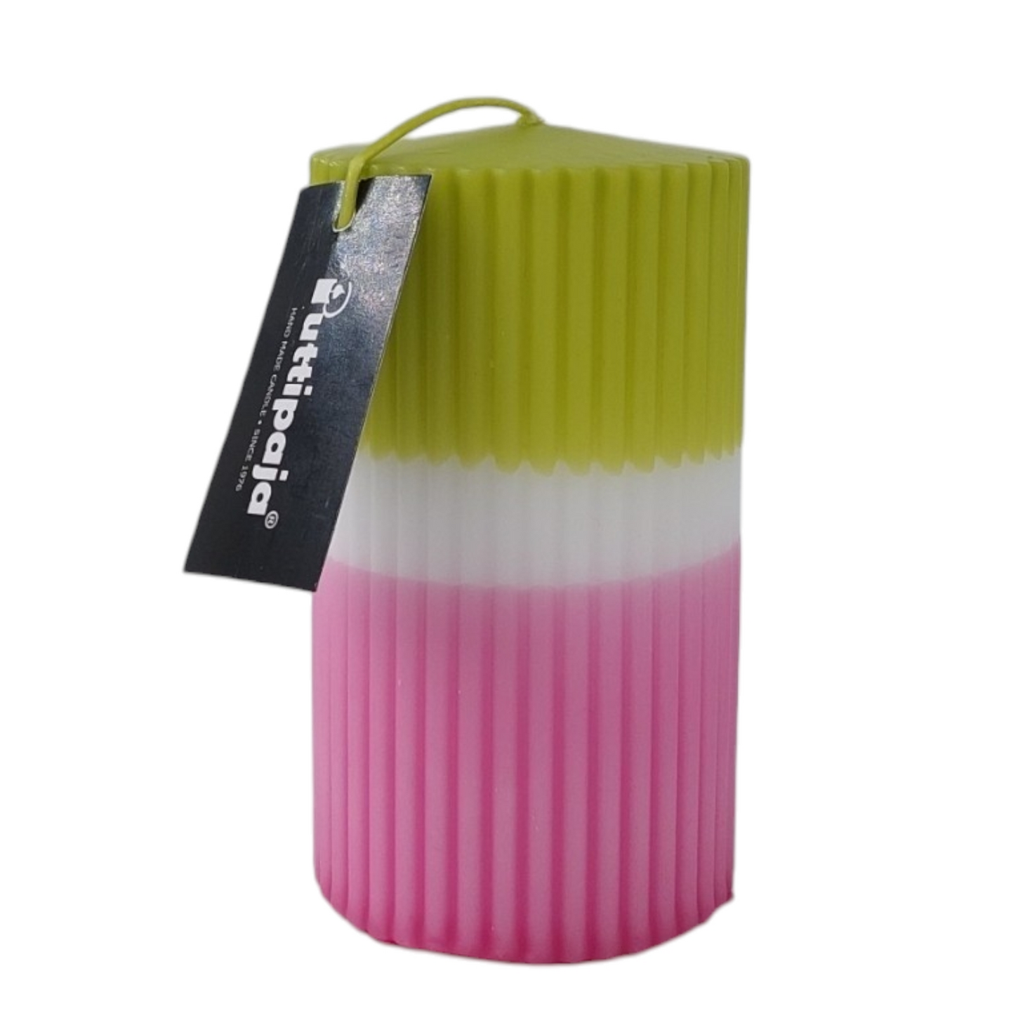 Raidalliset vekkikynttilämme valmistetaan käsityönä Dip dye -menetelmällä, joten jokainen kynttilä on upeasti uniikki.