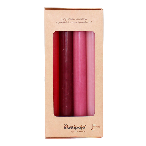 Puttipaja kruunukynttilä läpivärjätty 4kpl 20cm Calluna: viini, vanharoosa, vaaleanpun