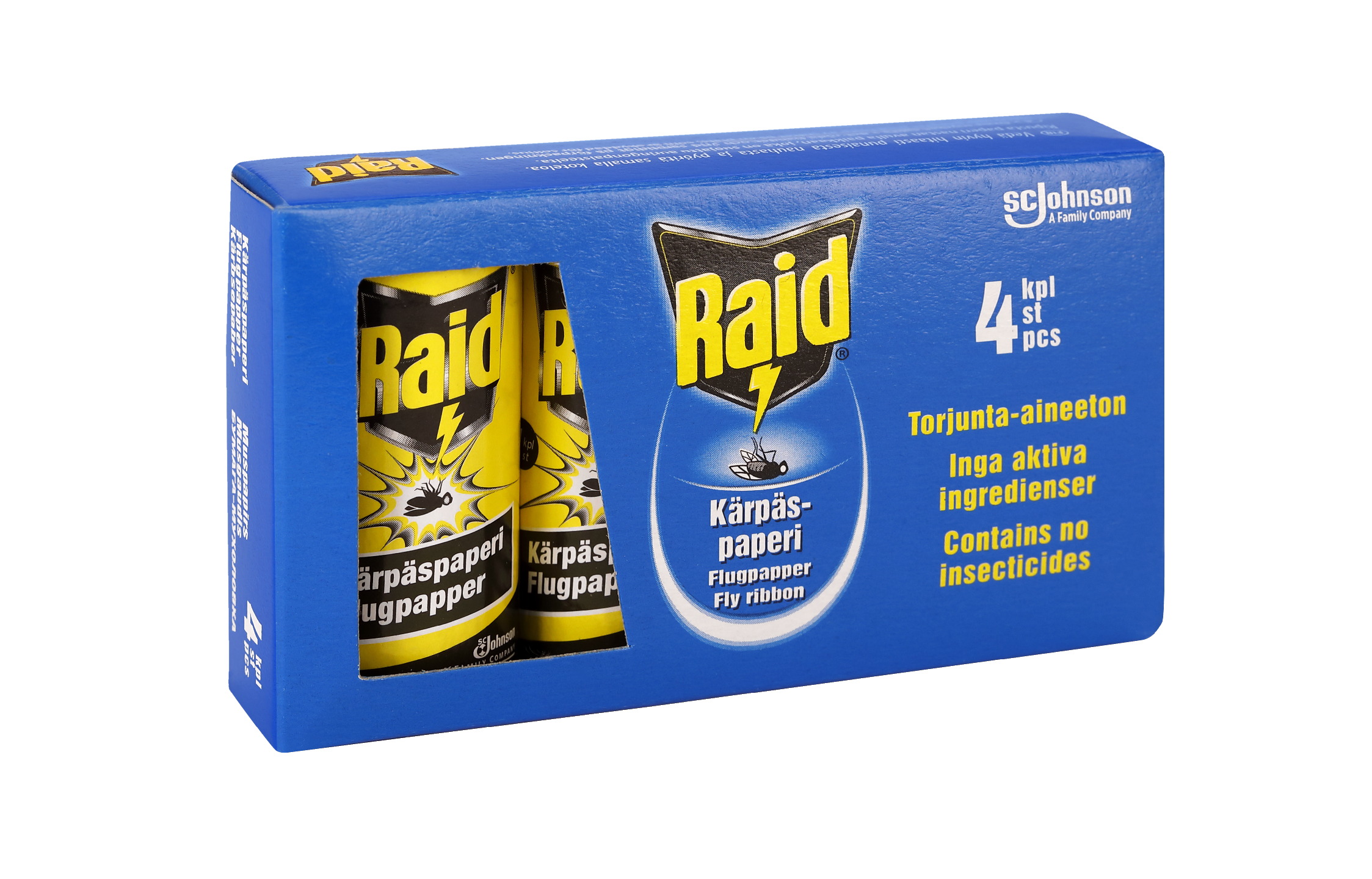 Raid kärpäspaperi on vanhimpia Raid-tuotteita. Se on myrkytön ja tuoksuton liimapintainen ansa, joka vangitsee kärpäset tehokkaasti.