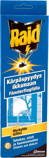 Raid Kärpäspyydys ikkunaan sopii erityisesti käytettäväksi kesämökissä, asuntovaunussa, veneessä ja missä tahansa tilassa, jossa kärpäsiä parveilee ikkunoilla. Kärpäspyydys on erityisen kätevä ikkunoilla, joiden laudoilla on sääskiä ja multakärpäsiä kerääviä kukkaruukkuja. Tuote ei sisällä kemiallista tehoainetta ja on täysin myrkytön.