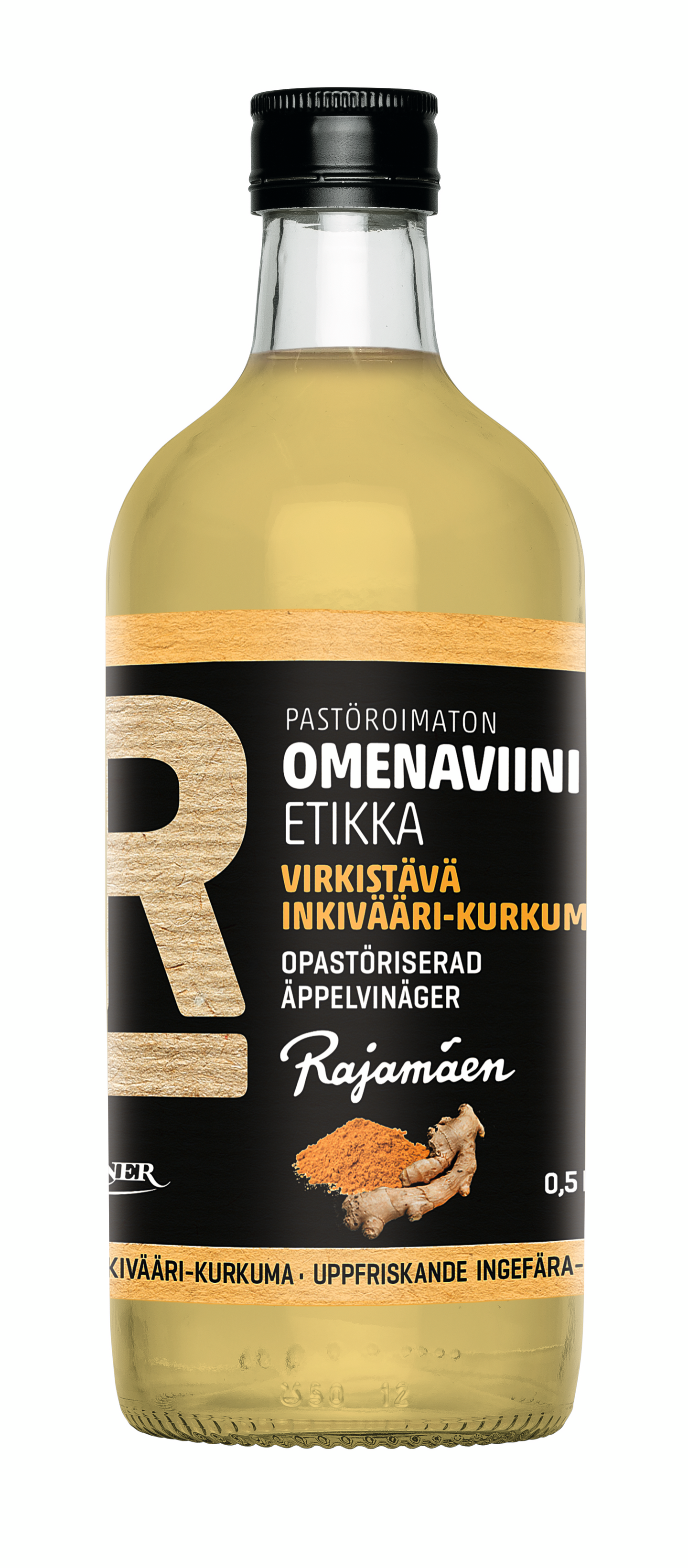 Rajamäen 0,5l Pastöroimaton omenaviinietikka inkivääri-kurkuma