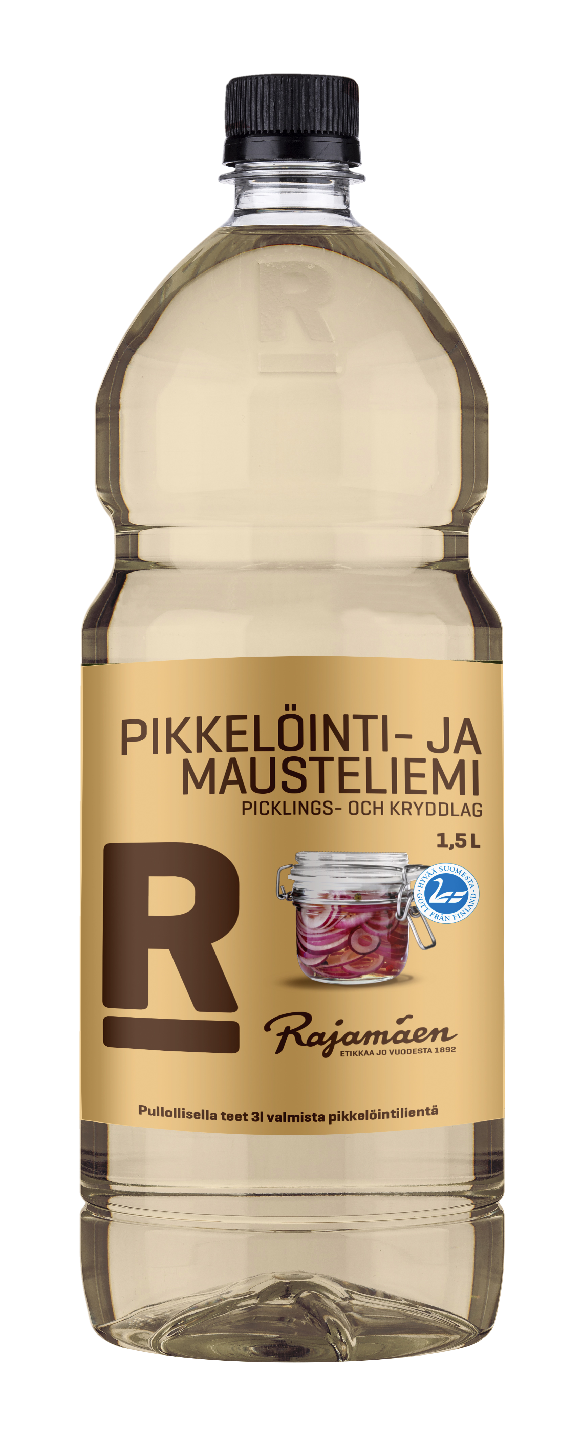 Rajamäen pikkelöinti- ja mausteliemi on tiivistetyssä muodossa oleva tuote, johon lisäät veden kotona. Tuote soveltuu kasviksille, kaloille, sienille, lihoille ja marjoille.