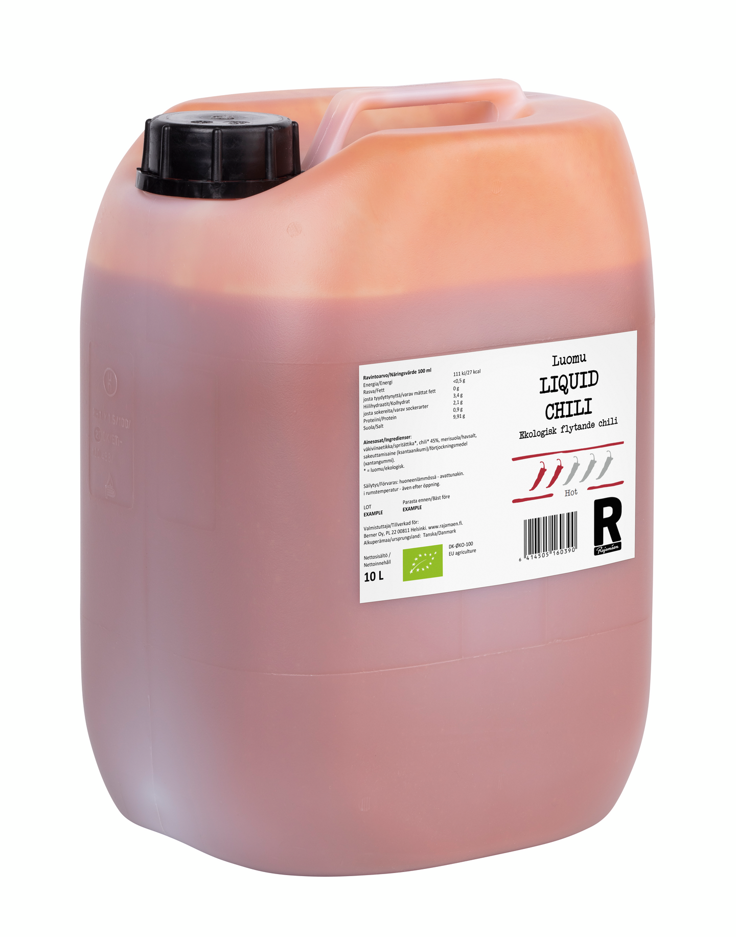 Rajamäen Luomu Liquid Chili on monikäyttöinen mauste nestemäisessä muodossa. Luomu väkiviinaetikkaan ja merisuolaan säilötty chili säilyy avattuna huoneenlämmössä. Tuotteessa korostuvat aidot ja raikkaat maut.