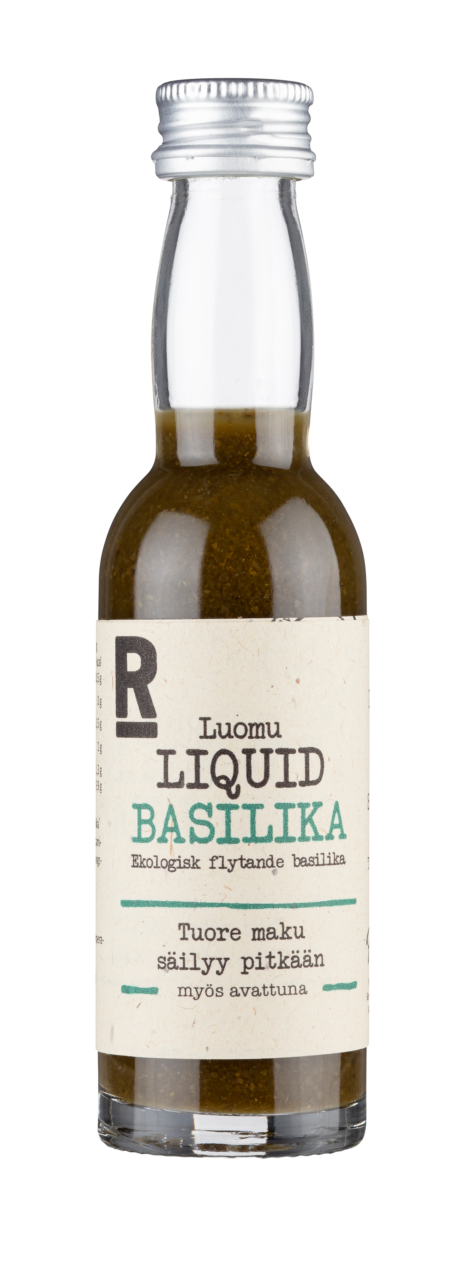 Rajamäen Luomu Liquid Basilika on monikäyttöinen mauste nestemäisessä muodossa. Luomu väkiviinaetikkaan ja merisuolaan säilötty basilika säilyy avattuna huoneenlämmössä. Tuotteessa korostuvat aidot ja raikkaat maut.