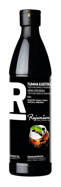 Käyttövalmis Rajamäen Tumma kastike valmistetaan Italiassa aidosta Aceto Balsamico di Modenasta ja kokoonkeitetystä rypälemehusta. Syvä ja aromaattinen maku tulee Aceto Balsamico di Modenan kypsästä, hedelmäisestä aromista sekä miellyttävästä makeudesta. Pehmeä kastike sopii erityisesti haudutettuihin ja paahdettuihin liha- ja kasvisruokiin sekä ruokaisampiin salaatteihin ja juustoille. Avattu pakkaus säilytetään jääkaapissa. Katso reseptejä: www.rajamaen.fi