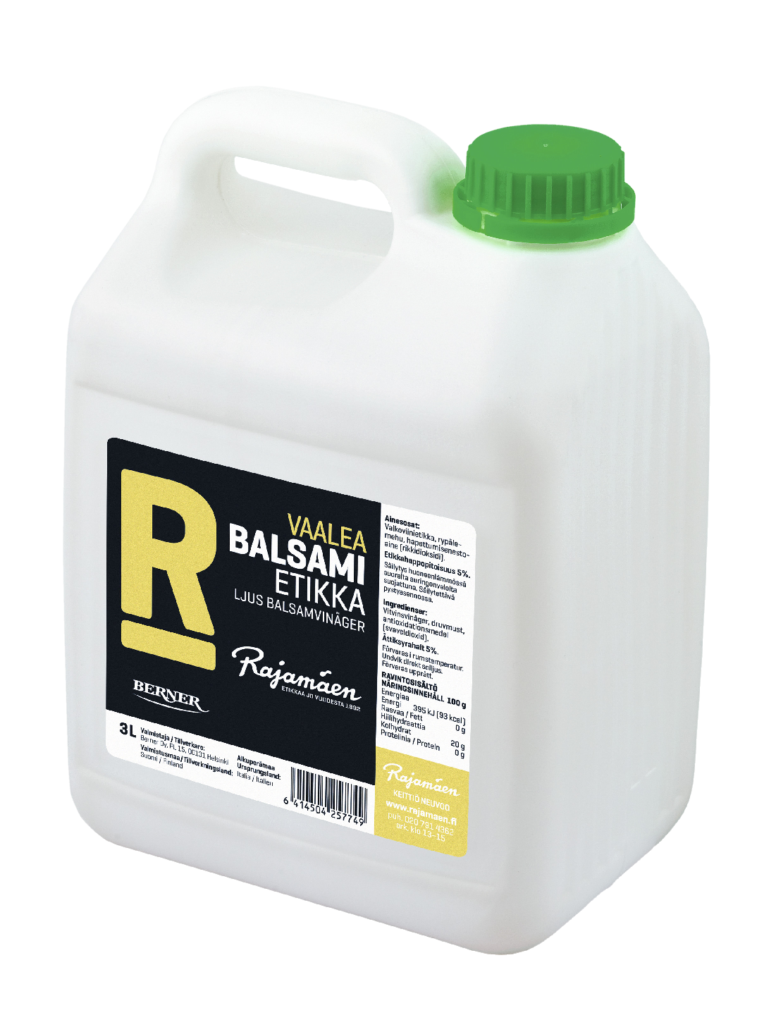 VegaaninenRajamäen Vaalea Balsamietikka on valmistettu laadukkaasta italialaisesta valkoviinietikasta ja kokoon keitetystä rypälemehusta, joiden yhdistelmänä syntyy sen hedelmäinen ja makean herkullinen maku. Yhdistä Vaalea Balsamietikka oliiviöljyyn ja mausta sillä raikkaat vihannekset, kalat ja hedelmät. Katso reseptejä: www.rajamaen.fi