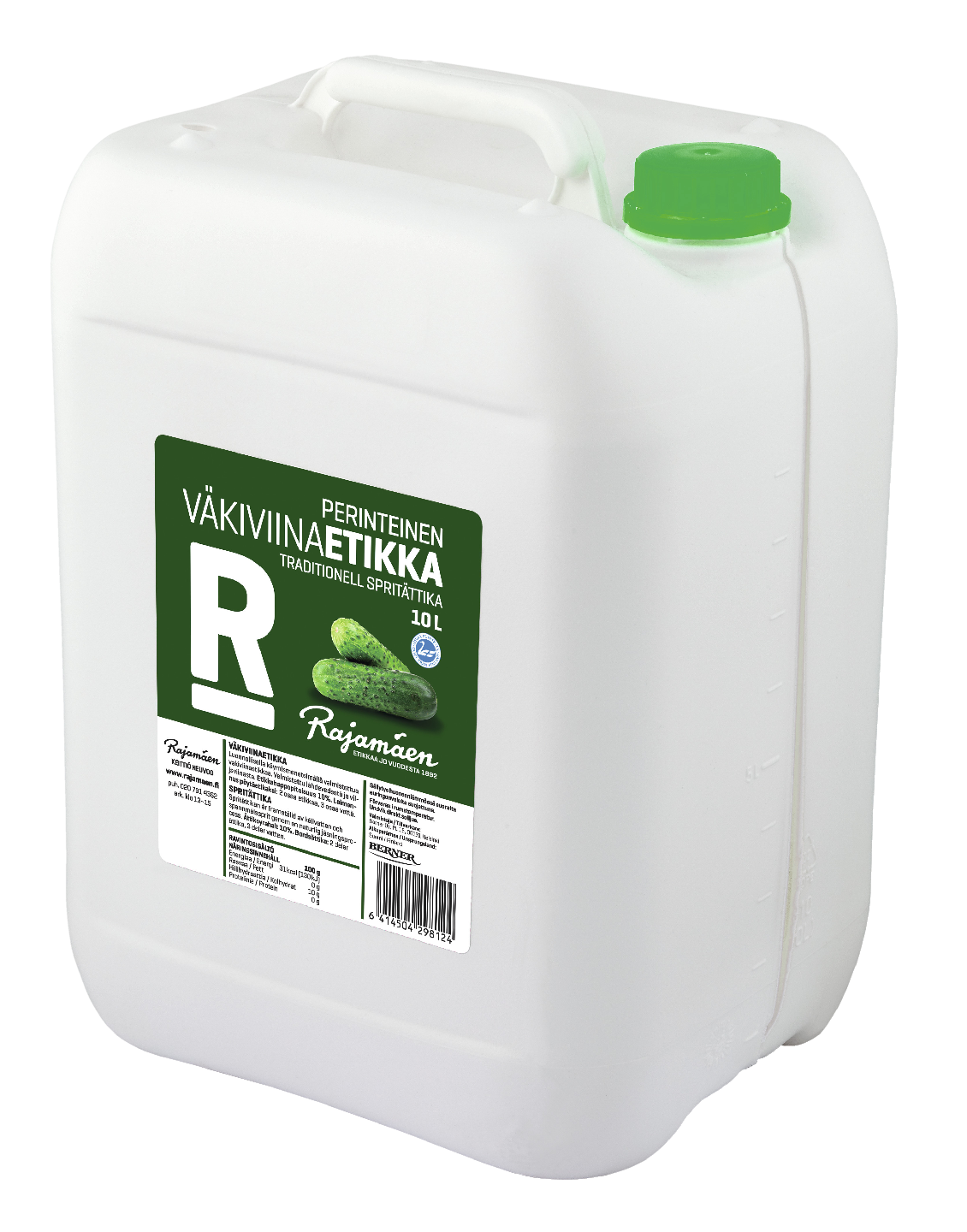 VegaaninenRajamäen Väkiviinaetikka valmistetaan luonnollisella käymismenetelmällä kotimaisesta viljaviinasta. Yli satavuotias merkkituote yhdistetään useimmiten säilöntään, mutta se on myös monipuolinen maustaja ja monen ruoan herkullisuuden salaisuus. Katso reseptejä: www.rajamaen.fi
