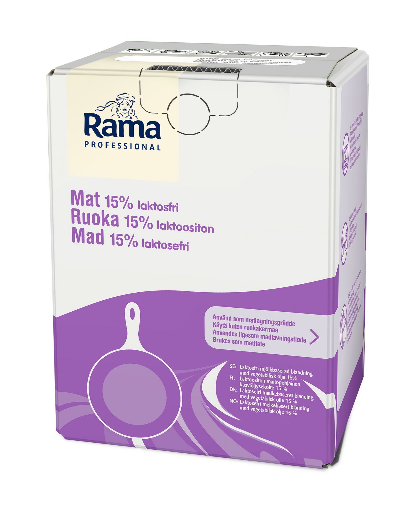 LaktoositonRama Professional Ruoka 15% on laktoositon vaihtoehto meijerikermalle ruoanlaittoon. Säilyttää oikean koostumuksen alusta loppuun saakka. UHT-käsitelty. Kylmäsäilytettävä.