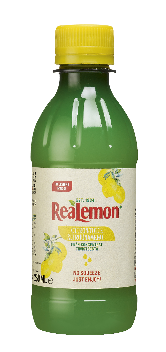 ReaLemon-mehut valmistetaan italialaisista sitruunoista. Pullo sisältää 8 sitruunan mehun. Vihreä PET-pullo takaa mehun tuoreuden, korkean laadun ja C-vitamiinipitoisuuden säilymisen korkeana. Erinomainen kaikkeen ruoanvalmistukseen marinadeista leivontaan.