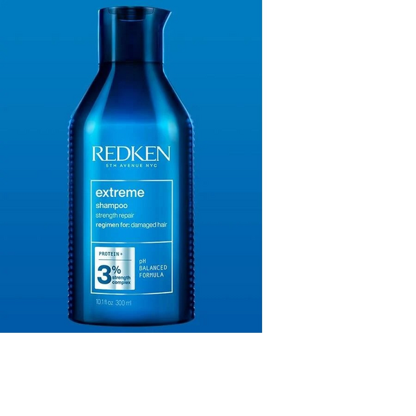 Redken Extreme Shampoo vaurioituneille hiuksille. Tämä shampoo puhdistaa, vahvistaa ja palauttaa vaurioituneita hiuksia ja ehkäisee hiusten katkeilua tulevaisuudessa. Extreme Shampoo sisältää Redkenin Strength Complexin, joka sisältää aminohappoja ja arginiinia vahvistamaan hiuksia sekä sitruunahappoa hoitamaan ja lisäämään sileyttä. Hoida kuivia ja vaurioituneita hiuksiasi täydellisellä Extreme-tuotesarjalla.