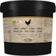 Suola, maissitärkkelys*, sheavoi*, raakaruokosokeri*, kananrasva* 5%, kananlihajauhe* 3,3%, sipuli*, auringonkukkaöljy*, kurkuma*, persilja*, lipstikka*, inkivääri*, korianteri*, rosmariini*, hapettumisenestoaine (rosmariiniuute*). *Luomu. Saattaa sisältää jäämiä kananmunasta, soijasta, maidosta, selleristä, sinapista, sulfiitista.