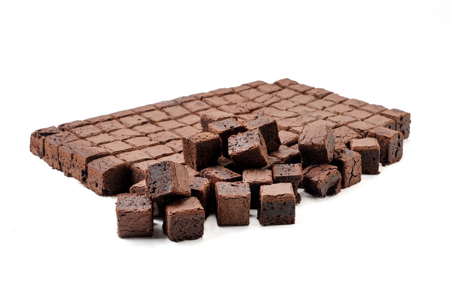Brownie minileivos, jossa yhdellä leivoslevyllä 108kpl 3x3cm kokoisia leivoksia, joiden paino n. 19g/kpl. Sulatettava leivos on herkullinen ja takuuvarma jälkiruokapöytien suosikki.