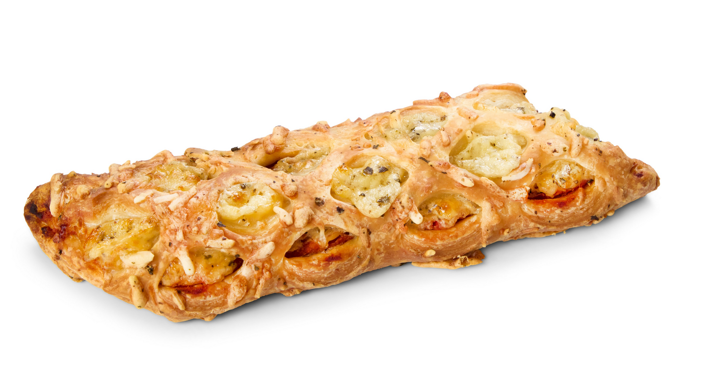 VEHNÄJAUHO, 17% tomaatteja, 10% JUUSTOA, vesi, DURUMVEHNÄSUURIMO, VOI, 4% MOZZARELLA, hiiva, sokeri, suola, sipulit, muunnettu tärkkelys, tärkkelys: VEHNÄ, maissi; makea HERAJAUHE, TÄYSMAITOJAUHE, KUIVATTU VEHNÄHAPANTAIKINA, VEHNÄPROTEIINI, hapot: Difosfaatit, Sitruunahappo; tomaattijauhe, KERMAJAUHE, mausteet, nostatusaine: Natriumkarbonaatit; HERAPROTEIINIKONSENTRAATTI, kasviöljy: palmu, auringonkukka; RASVATON MAITOJAUHE, glukoosisiirappi, dekstroosi, hiivauute, sipulijauhe, mausteuute, yrtit, luonnollinen aromi, väriaine: punajuuriuute. 25% tomaattitäyte, 9% mozzarellakermatäyte. Saattaa sisältää jäämiä kananmunista, pähkinöistä, soijapavuista, lupiinista, seesaminsiemenistä, selleristä, sinappista, muista gluteenipitoisista viljoista.