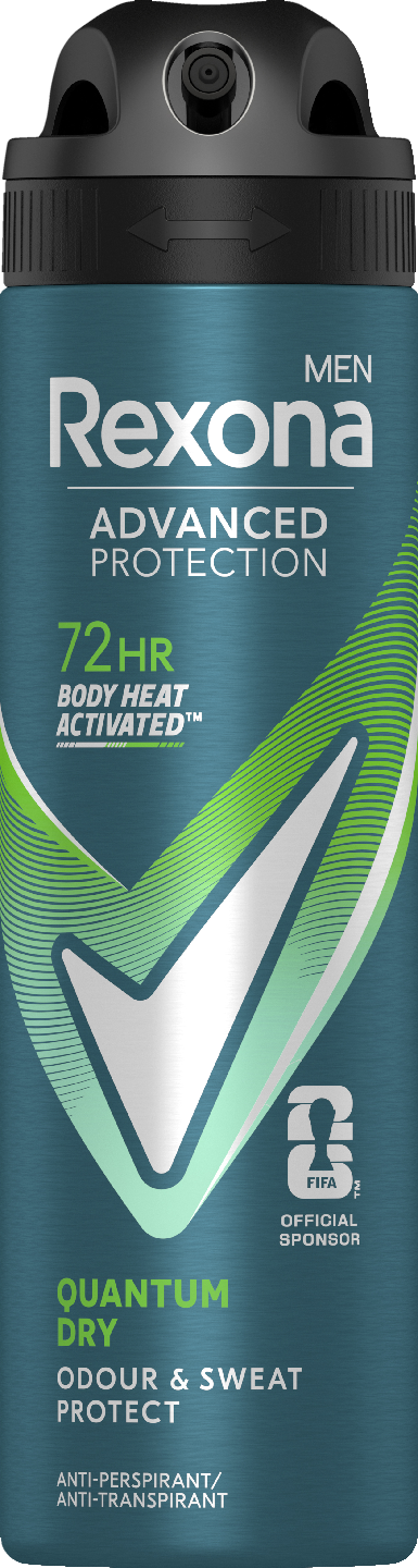 Rexona Advanced Protection Quantum Dry -antiperspirantti deodorantti miehille. Jopa 72 tunnin tehokas suoja hikeä ja hajua vastaan. Enää sinun ei tarvitse pelätä, että deodorantti pettää. Voit liikkua ja elää täysillä sekä olla varma itsesi tilanteessa kuin tilanteessa. MotionSense-teknologian ansiosta Rexona Quantum Dry -antiperspirantti spray tarjoaa raikkautta, jonka teho kestää tunnista toiseen. Mitä enemmän liikut, sitä enemmän Rexona-deodorantti suojaa ainutlaatuisen teknologiansa ansiosta. Lähde siis rohkeasti liikkeelle! Rexonan deodorantit on suunniteltu aktiivista elämää viettäville. Riippumatta siitä mitä teet elämässäsi – kiipeät vuorille, juokset bussille, pidät esityksen kollegoille tai menet treffeille – voit luottaa siihen, että Rexona antaa virkistävän lähdön päivään ja parhaan suojan hikoilua vastaan.