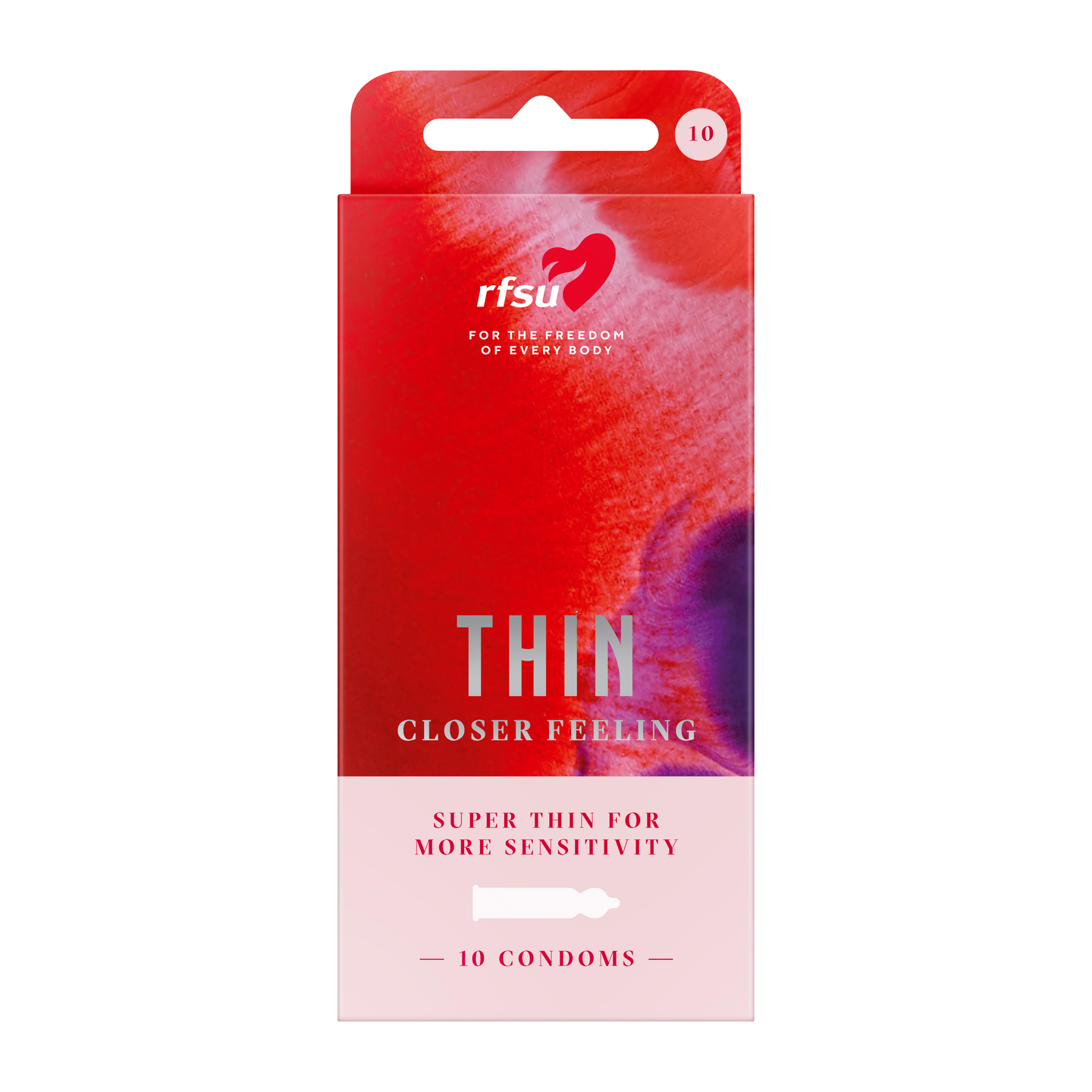 RFSU Thin on kaikille, joiden mielestä kondomin pitää olla mahdollisimman huomaamaton, mutta silti luotettava. Todella ohut lateksikondomi, jonka muotoilu parantaa istuvuutta ja tuntemusta . Väritön ja liukastettu sileäpintainen kondomi säiliöllä. Kondomin pituus on 180mm, ympärysmitta 104mm ja halkaisija 52mm.