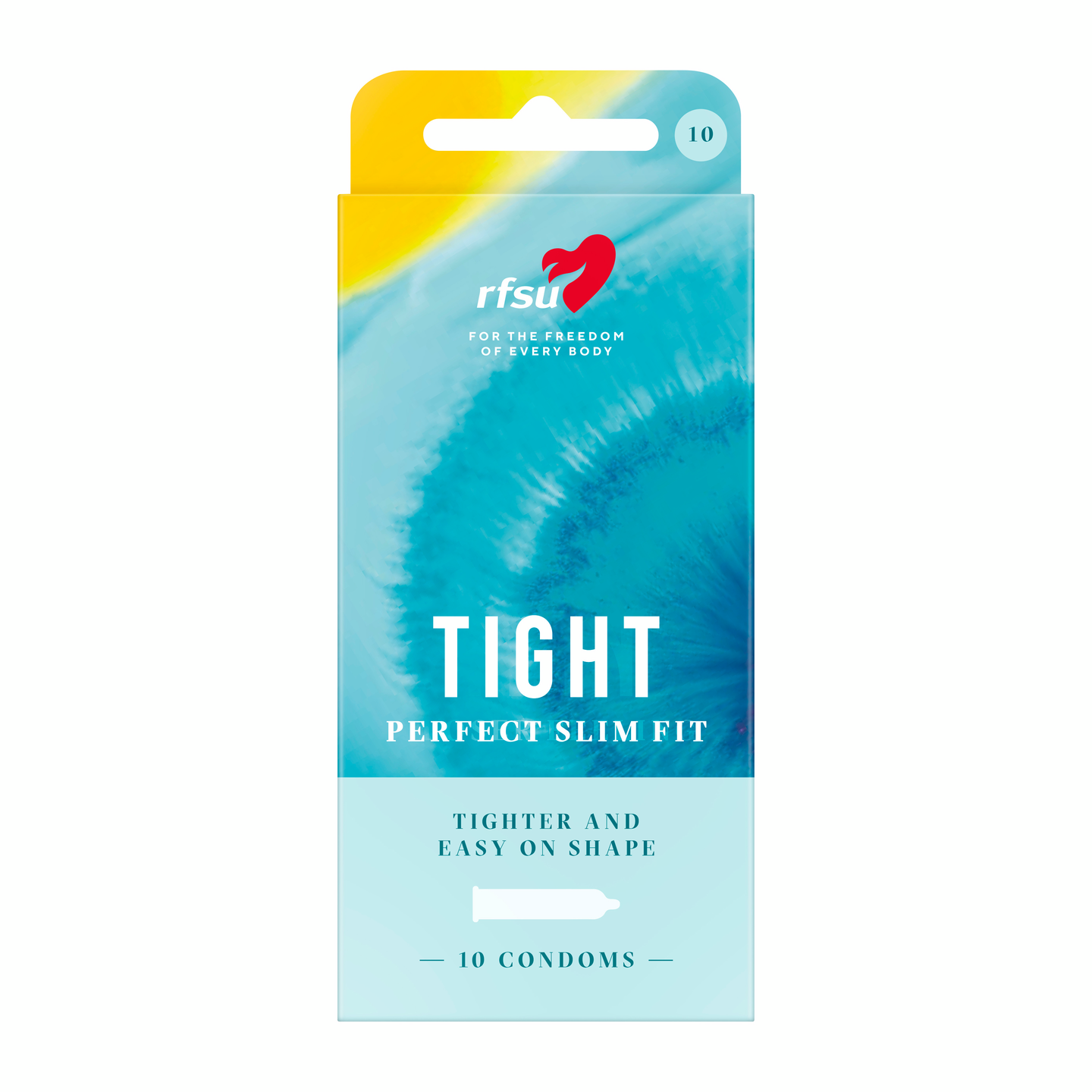 RFSU Tight on kondomi napakalla istuvuudella. Ohut ja varma kondomi, jonka suora muoto helpottaa päälle pukemista. Kondomin pituus on 175mm, ympärysmitta 98mm ja halkaisija 49mm.