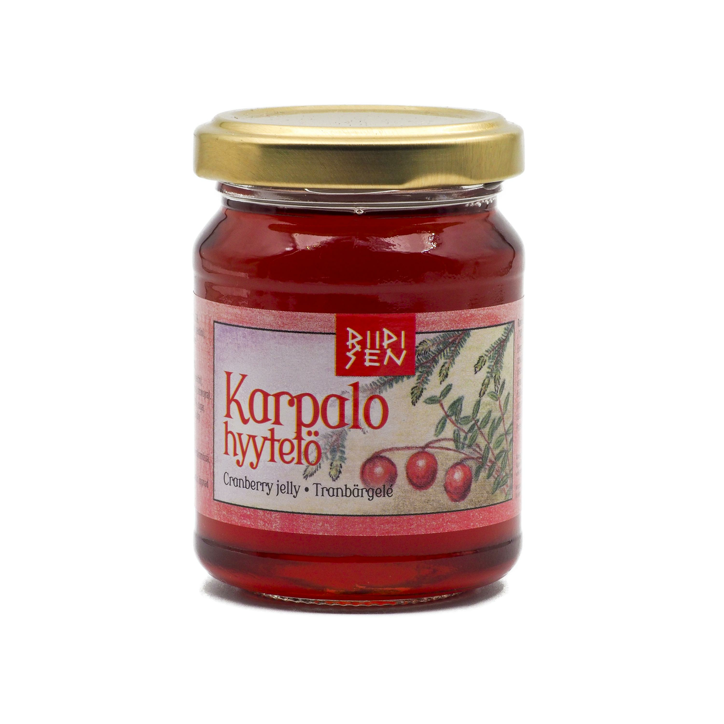 Siirappi, karpalomehu 33%, sokeri, hyytelöimisaine (pektiini), happamuudensäätöaine (sitruunahappo).