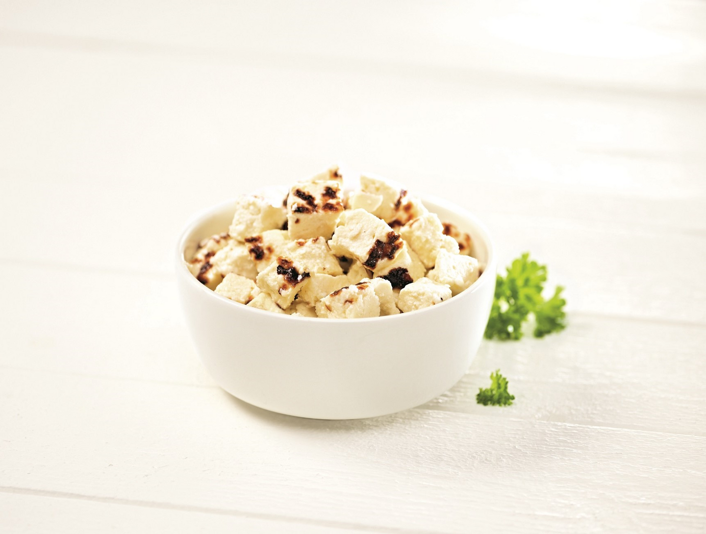 LaktoositonSuomalainen, monikäyttöinen leipäjuustokuutio salaatteihin, ruuan valmistukseen ja jälkiruokiin.