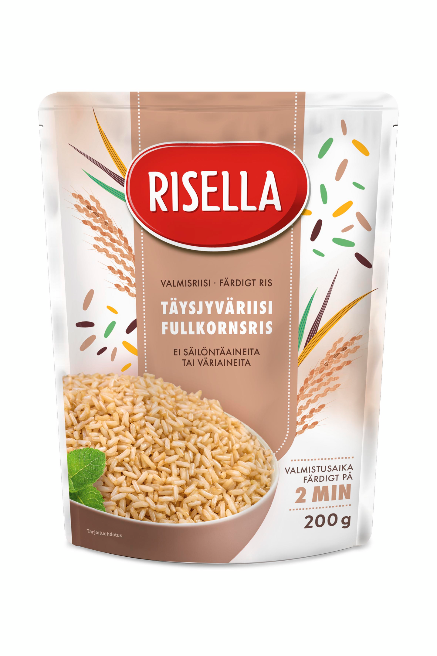 Risellan täysjyvä valmisriisi on pitkäjyväinen, tumma riisilajike, joka on höyrytetty kypsäksi ja vaati siksi vain 2 minuutin kypsennyksen. Lämmitä mikrossa kaksi tai pannulla kolme minuuttia. Helppo ja nopea tapa valmistaa ateria. Sopii erinomaisesti tavallisiin ruokiin esimerkiksi lihan, kanan tai -kalan kanssa tarjottavaksi. Yhdestä pussista saa 1- 2 annosta, riippuen miten riisi tarjotaan.