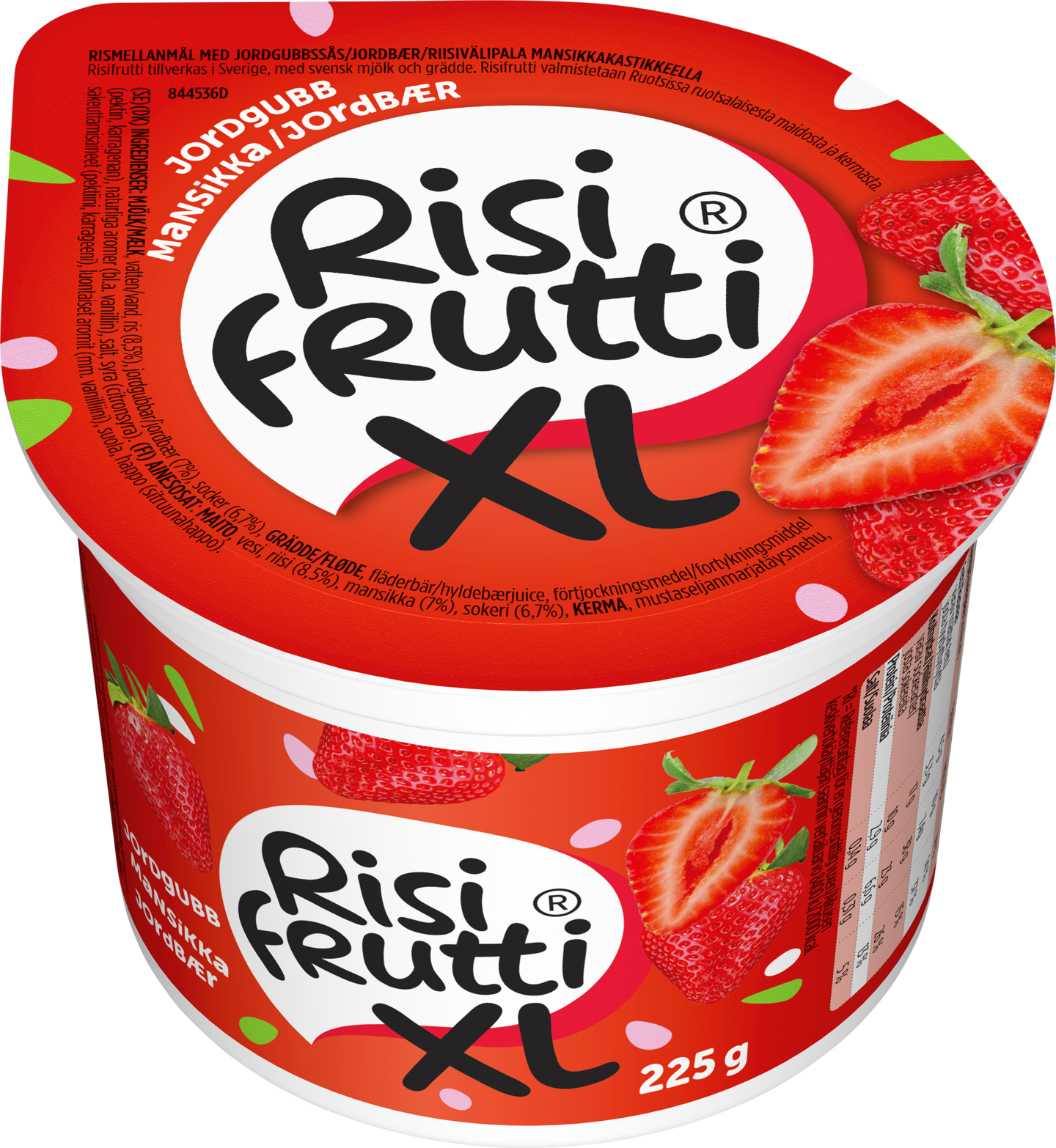 GluteenitonRisifrutti® on herkullinen välipala täyteläisen vaniljaisesta riisivanukkaasta ja makoisasta marja- tai hedelmäkastikkeesta. Risifrutti® mansikka on sarjan suosituin maku eikä suotta; sopiihan marjaisa mansikkakastike täydellisesti vaniljaisen riisivanukkaan kumppaniksi. Tästä isosta, XL-kokoisesta pikarista riittää isompaankin nälkään olipa kyseessä sitten aamupala, välipala, iltapala tai jälkiruoka.