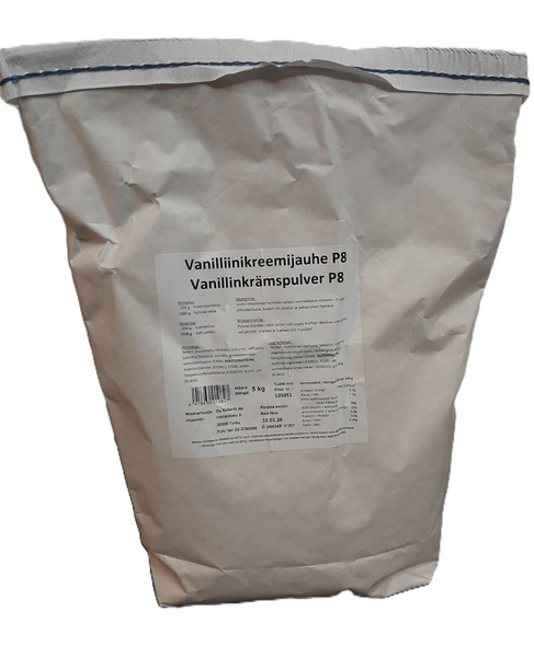 Sokeri, muunnettu tärkkelys (peruna), kasviöljy (kookos), kuivattu glukoosisiirappi, sakeuttamisaine (E404), MAITOPROTEIINI, stabilointiaineet (E339, E516), suola, aromit, väri (E160a).