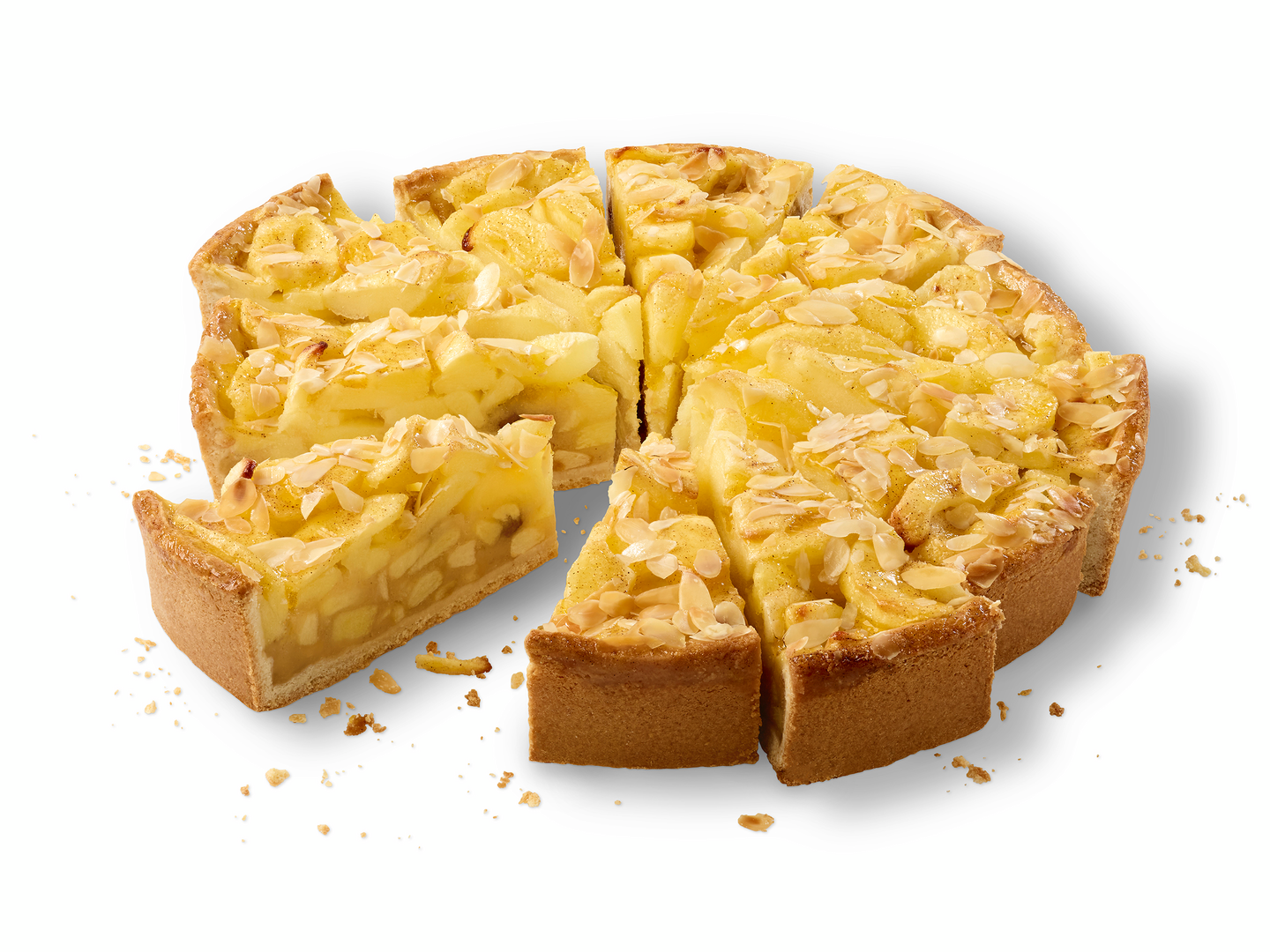 VegaaninenGluteeniton ja vegaaninen omenapiirakka. Murotaikinapohjan päällä on täytteenä runsaasti omenanpaloja sekä mausteena kanelia. Kakun pinnalla on mantelilastuja. Kakku on valmiiksi leikattu 14 palaan.