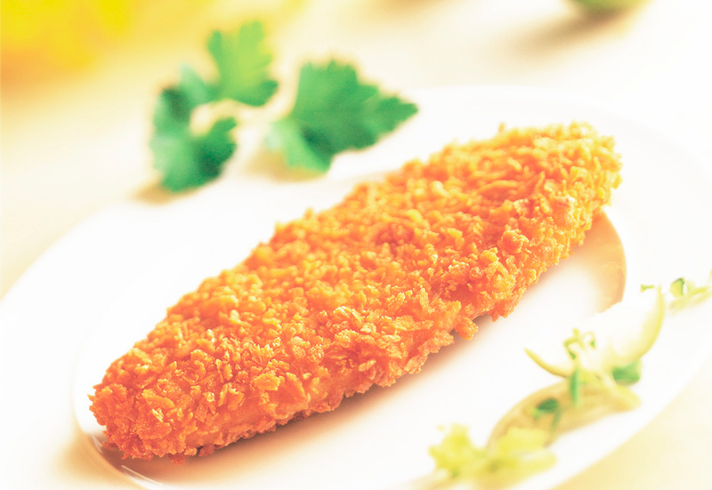Broilerinfilee (60 %, Eu) panerointi (maissihiutale 13 % (maissi, sokeri, ruokasuola, OHRAmallasuute, emulgointiaine auringonkukkalesitiini), muunneltu VEHNÄ- ja maissitärkkelys, vesi, riisijauho, ruokasuola), rapsiöljy, vesi, jodioitu ruokasuola (suola, kaliumjodi), rypälesokeri, maltodekstriini. Saattaa sisältää pieniä määriä SELLERIÄ, MAITOA (LAKTOOSIA), SINAPPIA, SOIJAA ja KANANMUNAA.