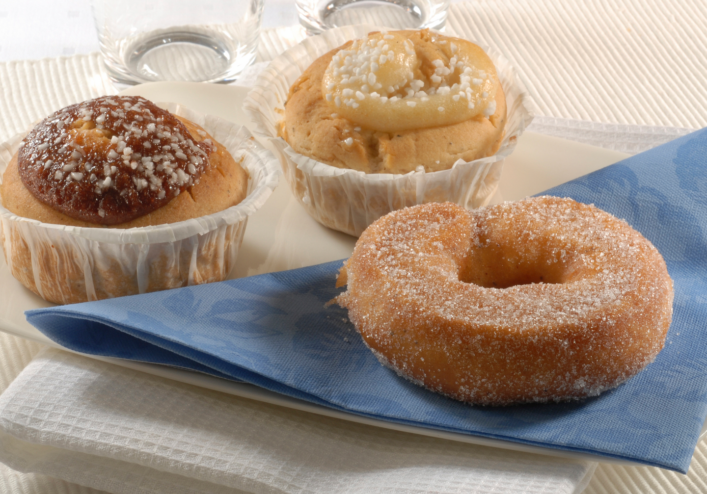 Kanelikierre:Vesi, maissitärkkelys, sokeri, rypsiöljy, riisijauho, tapiokatärkkelys, perunahiutale, hiiva, suola, sakeuttamisaine (E415),maissijauho, perunakuitu, kaneli 1,5%(Muu kuin Eu), kardemumma, nostatusaine (E500),kasviproteiini(herne), vanilja-aromi, happamuudensäätöaine (E 330), emulgointiaineet (E471, E322(auringonkukkasiemen )), väri(E160a). Vaniljakierre: Vesi, maissitärkkelys, sokeri, rypsiöljy, riisijauho, tapiokatärkkelys, perunahiutale, hiiva, suola, sakeuttamisaine (E415), maissijauho, perunakuitu, kardemumma, nostatusaine (E500), kasviproteiini(herne), vanilja-aromi 0,5%(Eu), vaniljasokeri0,5%(Suomi), happamuudensäätöaine (E330), emulgointiaineet (E471, E322), väri (E160a). Munkkirinkilä: Vesi, maissitärkkelys, sokeri, kasviöljy ja- rasva (osittain kovetettu), rapsi- ja kookosöljy, riisijauho, tapiokatärkkelys, perunahiutale, hiiva, suola, sakeuttamisaine(E415), maissijauho, perunakuitu, kardemumma, kasviproteiini(herne), vanilja-aromi.
