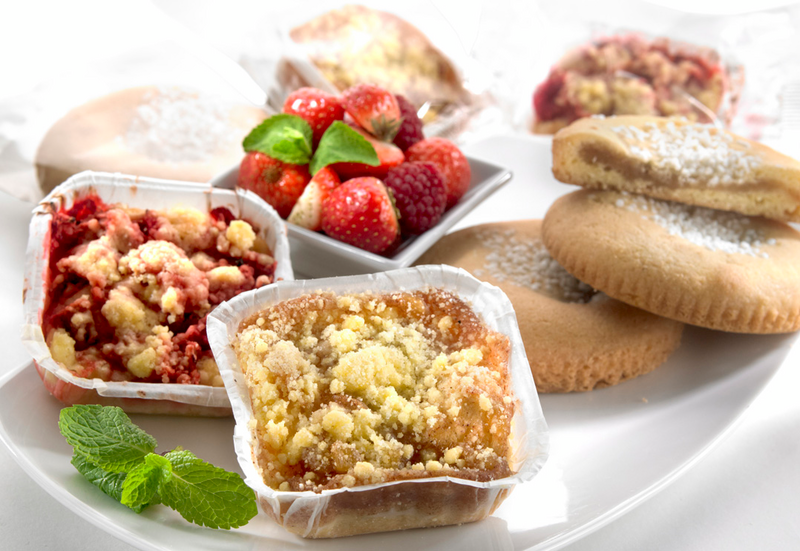 Omena-kanelikakkupala: Omenatäyte (Suomi):((omena(70%),modifioitu tärkkelys,happamuudensäätöaine (E330),aromi,säilöntäaineet (E202,E224), väri (E100,E160a)),kasvirasva(palmu-,rapsi-ja kookos,osittain kovetettu),sokeri,KANANMUNA, maissitärkkelys,maissijauho,vesi,sakeuttamisaine (E415), nostatusaine (E500),perunakuitu,vaniljasokeri,kaneli0,3%(Muu kuin Eu),voi -ja sitruuna-aromi,emulgointiaine (E471),suola,luontaiset ja luontaisen kaltaiset voiaromit. Raparperi-mansikkakakkupala:((Raparperi(12%)(Eu), mansikka (12%)(Eu)),kasvirasva (palmu-,rapsi-ja kookos,osittain kovetettu),sokeri, KANANMUNA,maissitärkkelys,maissijauho,vesi,sakeuttamisaine (E415),nostatusaine (E500), perunakuitu,vaniljasokeri,voi- ja sitruuna-aromi, emulgointiaine (E471), happamuudesäätöaine (E330), väri (E160a). Toffee Cookie: Kasvirasva(palmu-,rapsi-ja kookos,osittain kovetettu),sokeri,kookoskerma(Muu kuin Eu) ((kookospähkinäuute 90%), stabilointiaine (E415)), maissitärkkelys,tapiokatärkkelys,maissijauho, KANANMUNA,perunakuitu,nostatusaine (E500), vaniljasokeri,emulgointiaine (E471),suola, luontaiset ja luontaisen kaltaiset voiaromit, sakeuttamisaine (E415),vesi,väri (E160a).