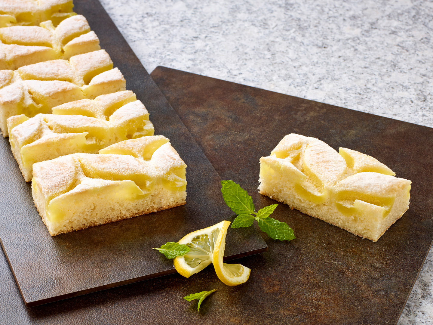 VegaaninenSitruunakakkupala on raikkaan sitruunainen vegaaninen herkku. Pehmeässä, kuohkeassa "hiekkakakku" pohjassa on raikkaita sitruunaraitoja antamassa makua ja näköä, jonka tomusokeri viimeistelee. Kakkulevy on valmiiksi paloiteltu 24 x n. 63 g paloihin.
