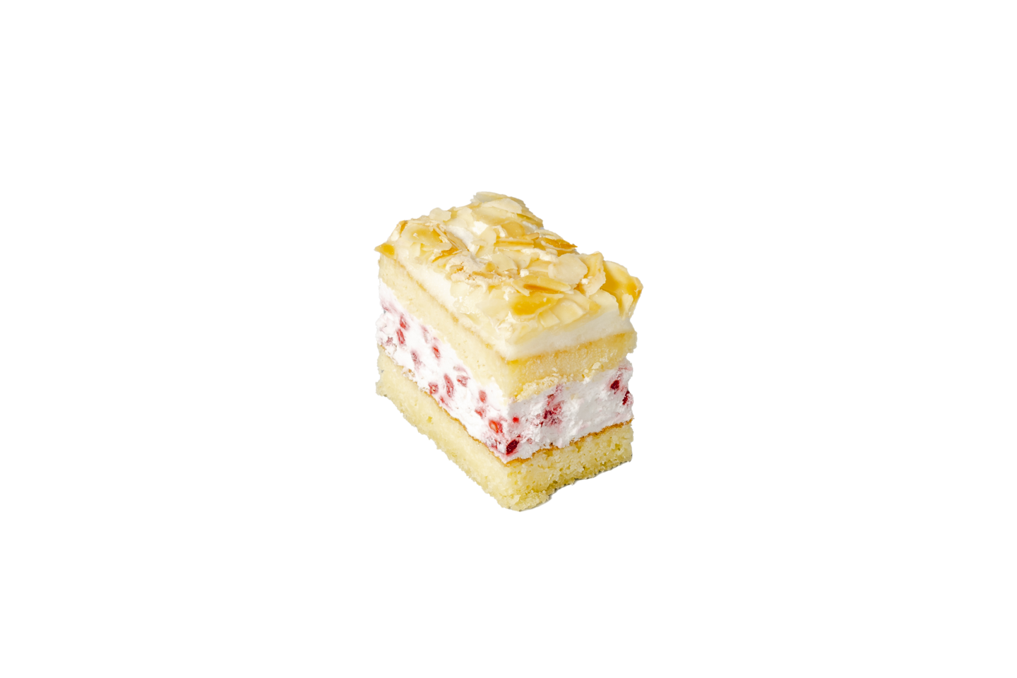 Kakkupohja [margariini (kasviöljy (palmu, rapsi), vesi, emulgointiaine E471, suola, happamuudensäätöaineet E330, säilöntäaine E202, maku- ja aromiaineet, väri E160a), laktoositon MAITO, sokeri, VEHNÄJAUHO, KANANMUNAN keltuainen (pastöroitu KANANMUNAN keltuainen, säilöntäaine E202, happamuudensäätöaine E330), leivinjauhe (nostatusaine (E450, E500, E341), VEHNÄTÄRKKELYS)], täyte [vispautuva kasvirasvasekoite (vesi, kokonaan kovetettu kasviöljy (palmuydin), sokeri, MAITOPROTEIINI, emulgointiaine (E472b, E472e, E322 SOIJALESITIINI), stabilointiaine (E460, E466), aromit, väri E160a), vadelma, sokeri], marenki [sokeri, pastöroitu KANANMUNA valkoinen (VALKUAISMASSA, happamuudensäätöaine E270, sakeuttamisaine E415, stabilointiaine E520), MANTELI, vanilliinisokeri (sokeri, aromi (vanilliini))].
