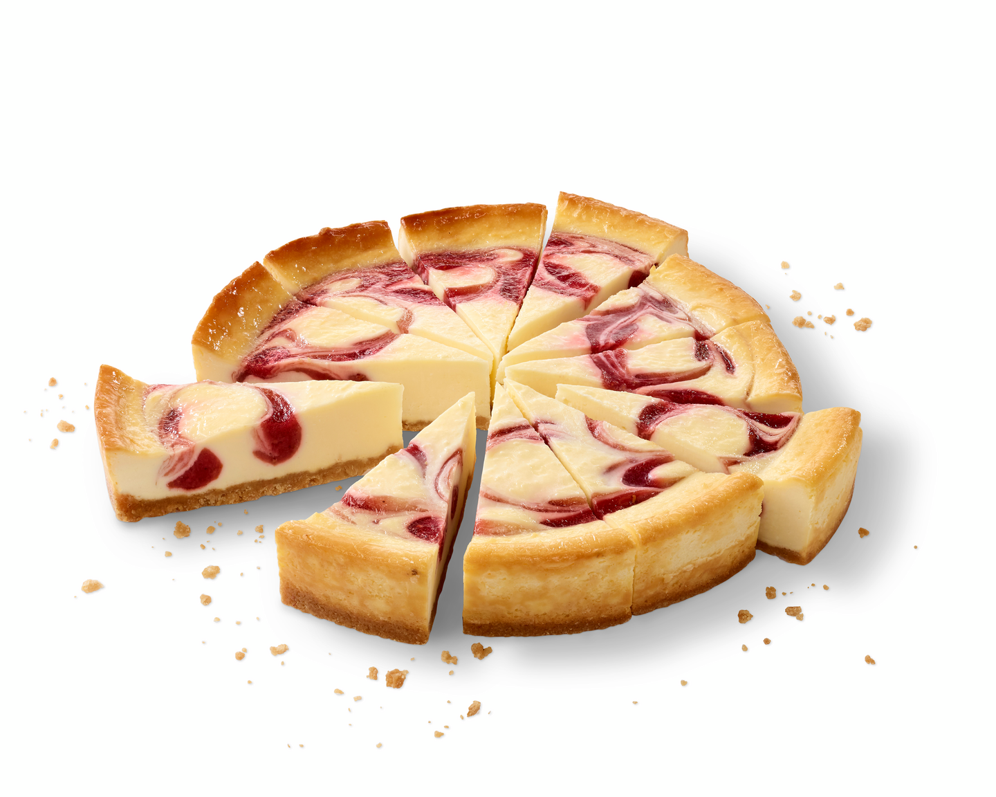 Vadelmaraita-juustokakku on herkullisella vadelmakastikkeella raidoitettu, täyteläinen paistettu juustokakku. Herkullinen kakku on valmiiksi leikattu 12 x 120 g paloihin. Juustokakun juusto on aitoa tuorejuustoa.