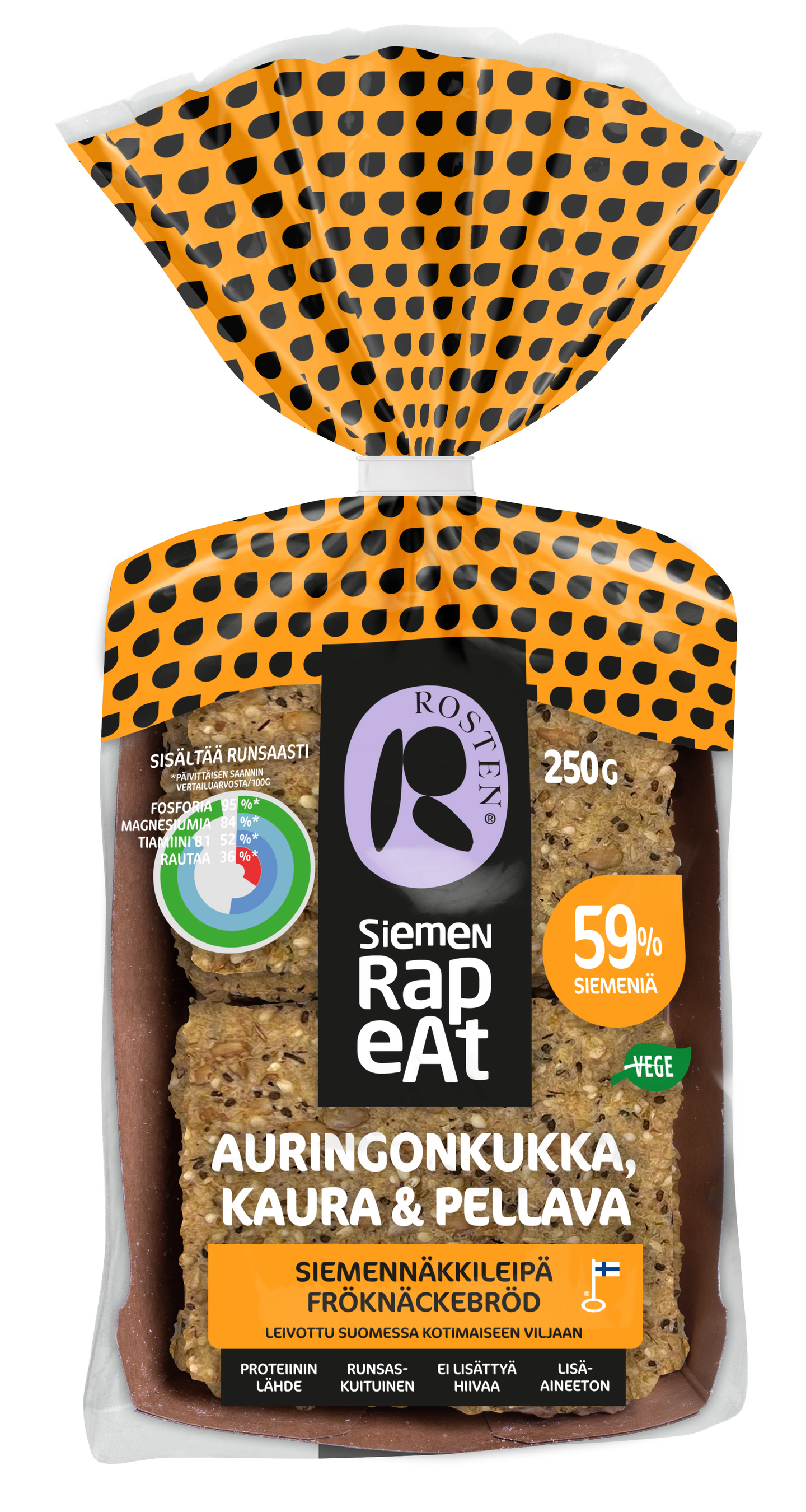 Rosten Siemen Rapeat siemennäkkileipä 250g auringonkukka, kaura & pellava