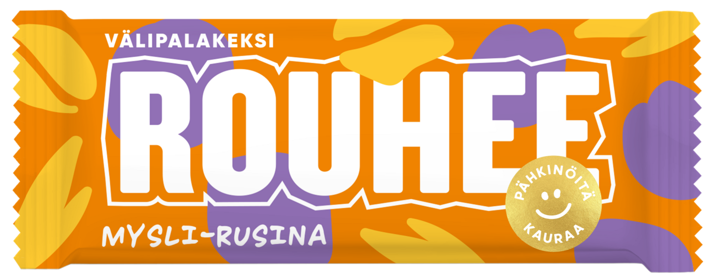 Rouhee on heille, jotka rakastavat herkullisia välipalahetkiä. Rouskuvaa mysliä, rusinaa, hasselpähkinää ja kuiturikasta kauraa. Rouhee on välipalakeksi jossa on vähemmän sokeria ja enemmän aitoja raaka-aineita. Uunissa herkulliseksi paahdettu Rouhee on täydellinen välipalanautinto