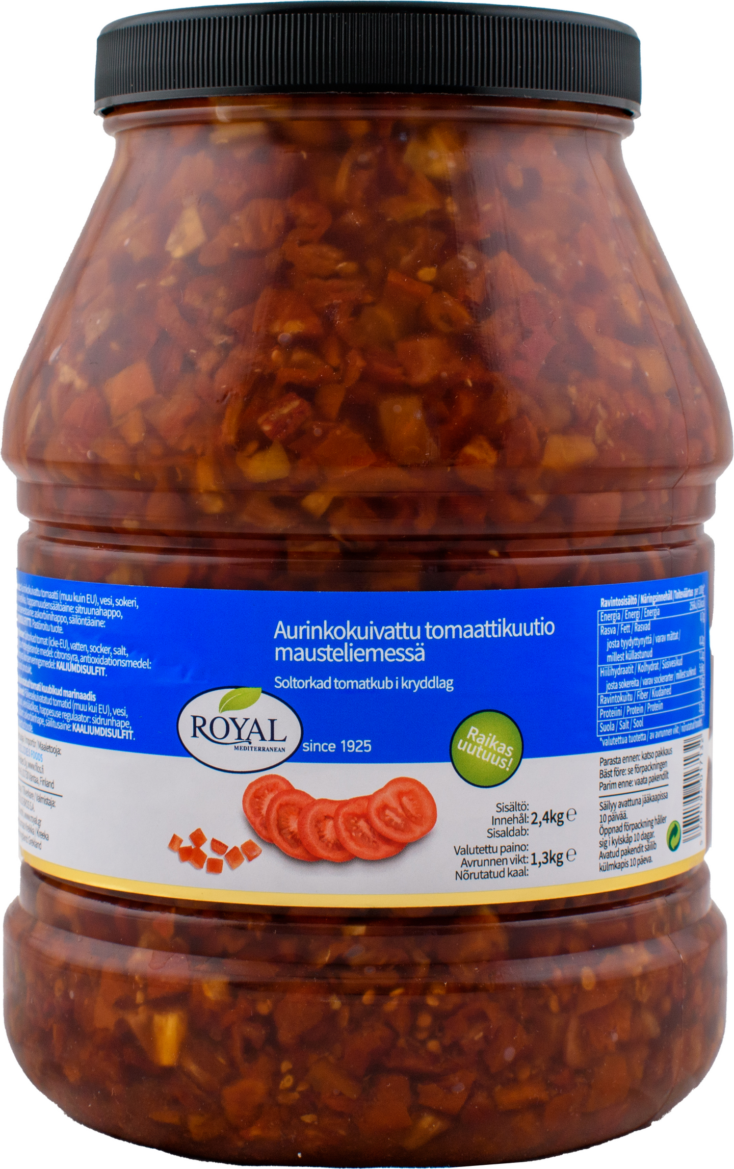 Royal aurinkokuivattu tomaattikuutio mausteliemessä 2,4kg/1,3kg