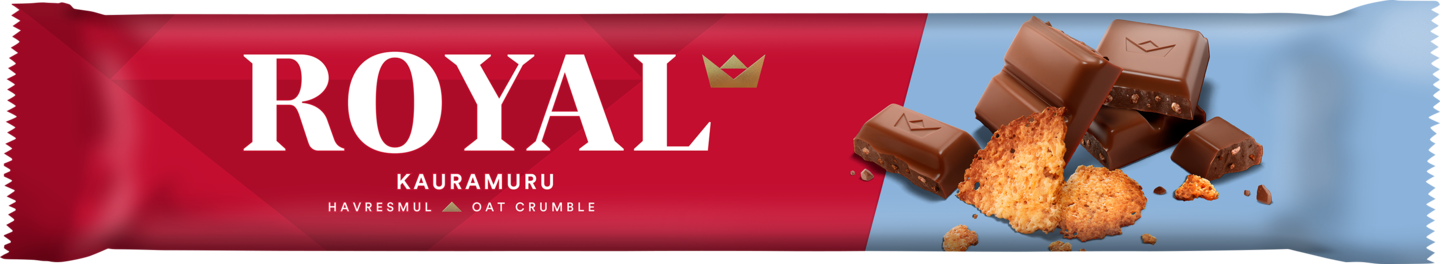 Royal Kauramuru -suklaapatukassa maistuvat täyteläinen maitosuklaa, rapea kaurakeksimuru ja rouskuva krokantti. Koe herkullisen maitosuklaan ja kullanruskeaksi karamellisoituneen kaurakeksin vastustamaton liitto! Royal-suklaa on valmistettu vastuullisesti Rainforest Alliance -sertifioidusta kaakaosta, eikä se siihen ole lisätty palmuöljyä.