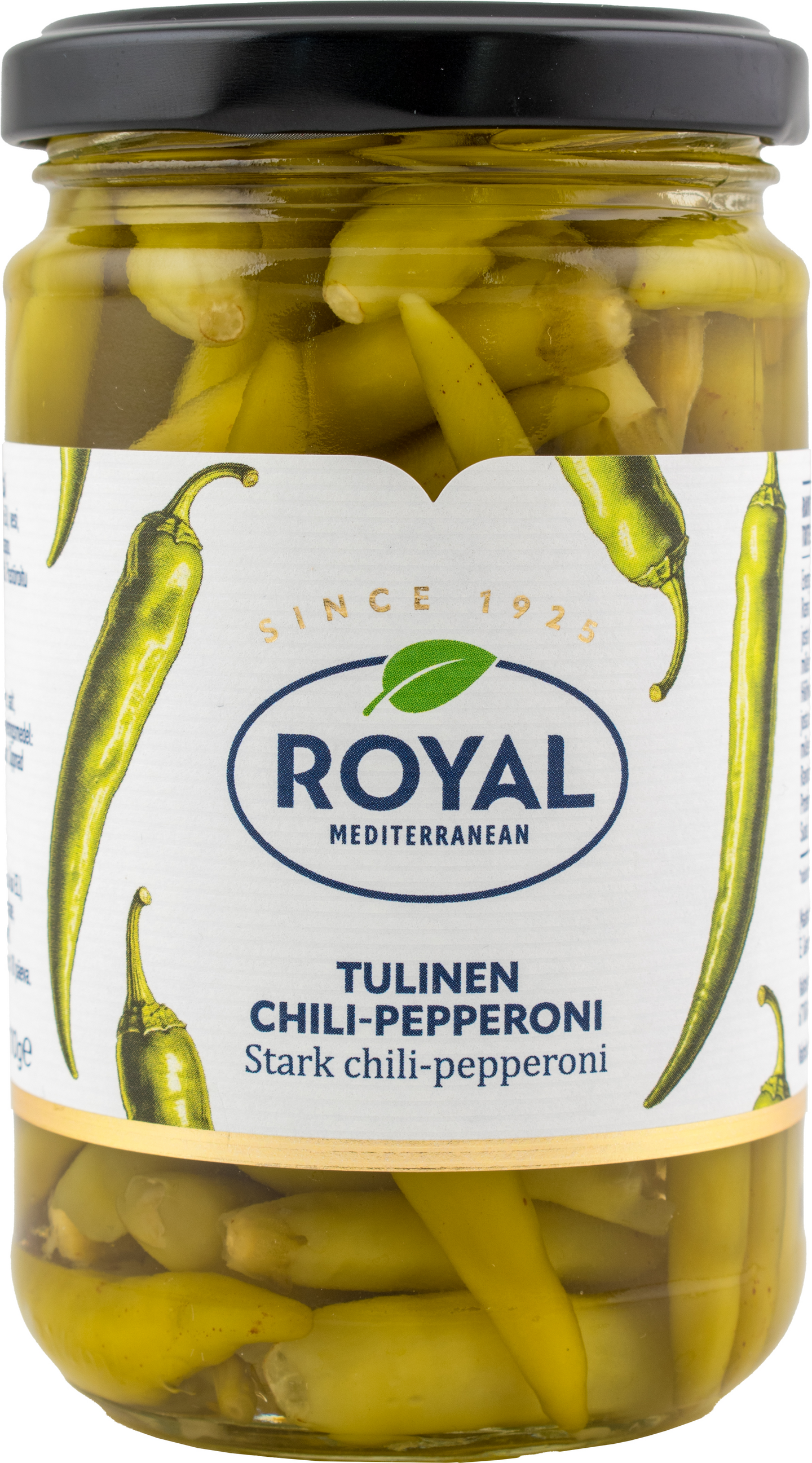Royal on merkki laadukkaista paprikoista ja pepperoneista. Tulinen chili-pepperoni on sarjan vahvin maultaan. Mikäli haluat vähentää tulisuutta, leikkaa chili-pepperoniin viilto ja poista siemenet ennen käyttöä.