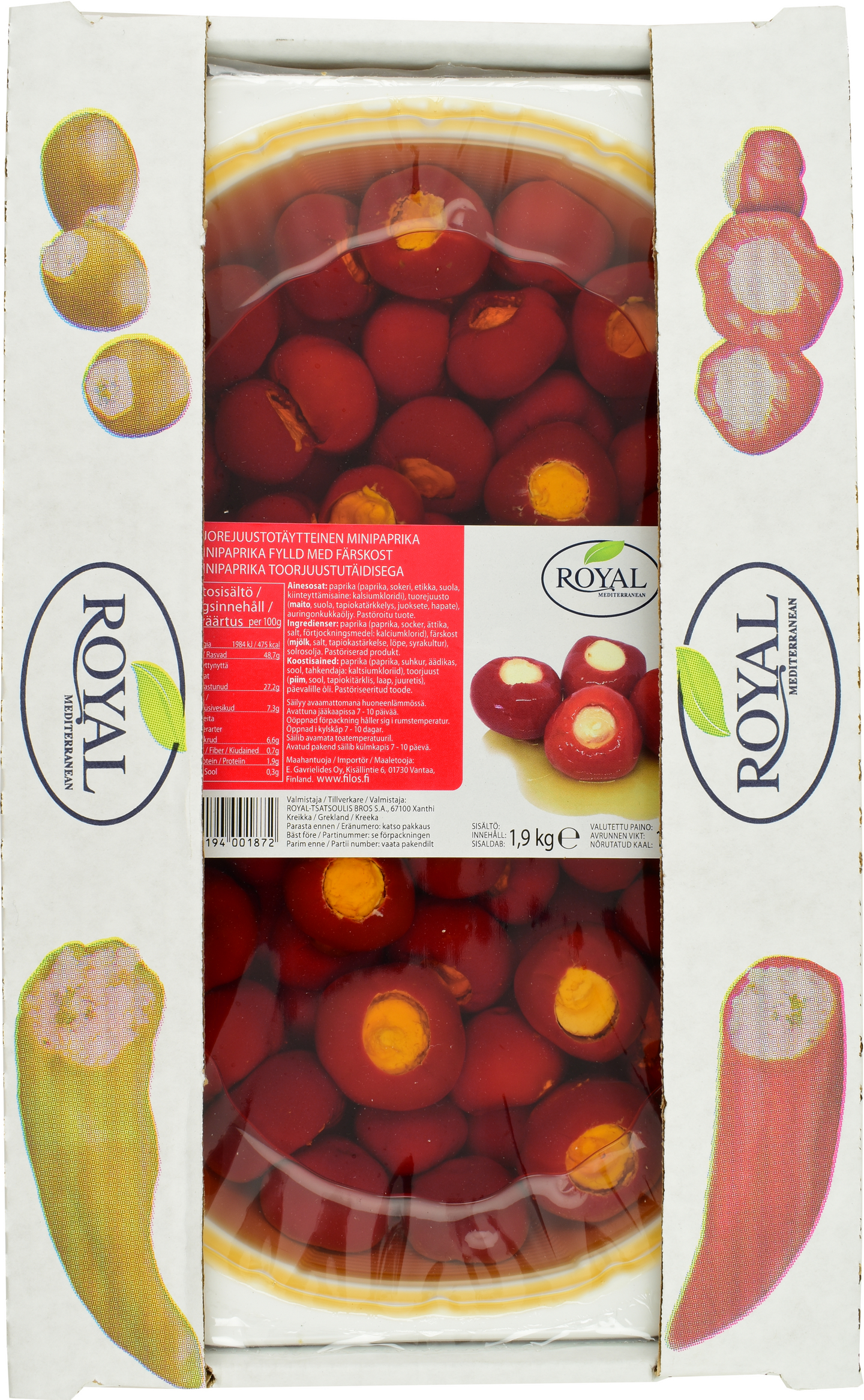 Royal tuorejuustotäytteinen minipaprika öljyssä dyno 1,9kg/1,2kg