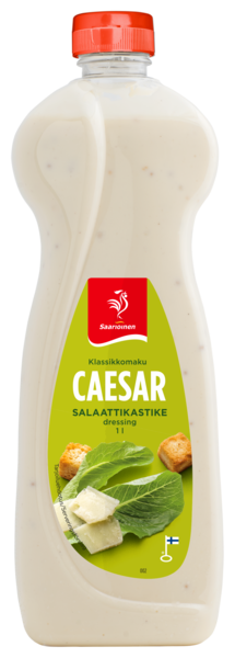 LaktoositonSaarioinen Caesar-salaattikastike on parmesanjuuston ja anjoviksen makuinen kastike joka sopii erinomaisesti maustamaan nimensä mukaan kaikki Caesar-salaatit, valmistat salaattisi sitten kanasta, kalasta tai vaikka äyriäisistä.