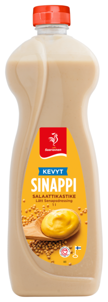 VegaaninenSaarioinen Kevyt Sinappisalaattikastike on kevyempi versio perinteisestä sinappikastikkeesta ja sopii erinomaisesti niin lihaa kuin kalaakin sisältäviin salaatteihin. Kokeile!